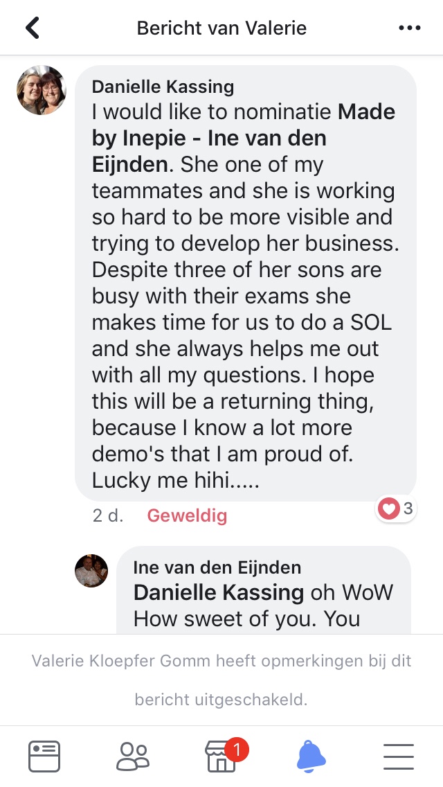 Deze week was weer heel bijzonder. Mijn lieve teamgenootje Danielle Kassing had mij genomineerd voor een wedstrijd. Je kon iemand opgeven die je kende van Stampin’Up waar je bewondering voor had en wie je een prijs gunde. Ik las de aankondiging en opeens zie ik mijn naam eronder staan. Echt zo leuk. Dit was haar verklaring waarom ze mij nomineerde :