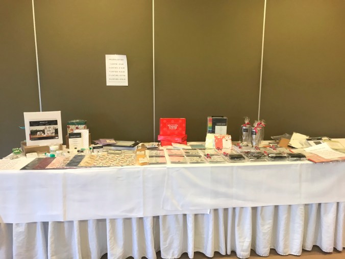 Danielle en ik zouden de lotenverkoop doen en hebben dus veel demo’s gezien en gesproken. Zo leuk om mensen die je normaal van Facebook kent nu in het echt te zien. We konden ook knutselen maar ik heb meer gekletst en gelachen. Na de lunch was de trekking maar helaas had ik geen prijs.