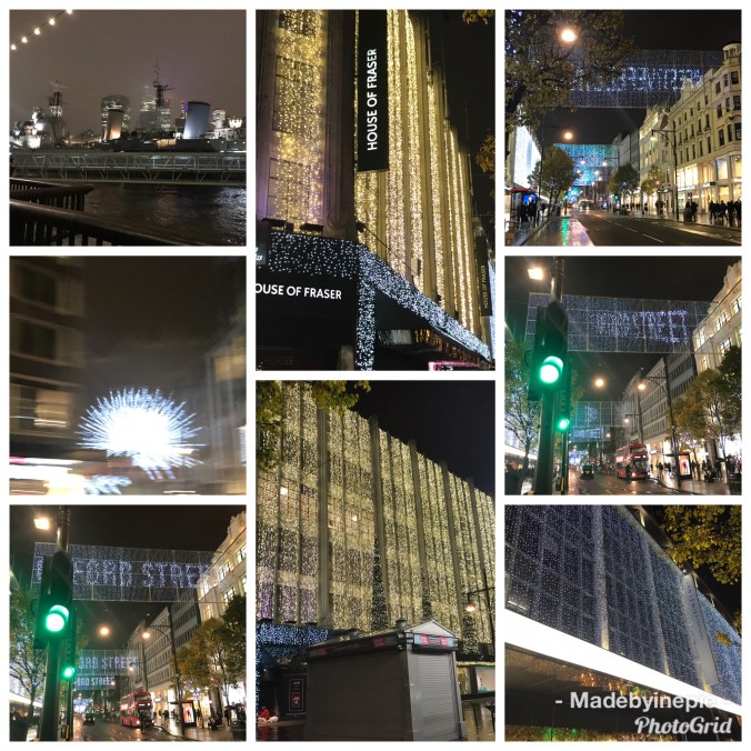 En toen de metro naar Oxford Street genomen voor de kerst verlichting: Wow! Sprookjesachtig mooi. Willem genoot met volle teugen het liefste wil hij ons huis ook zo verlicht hebben Haha: How about no! De buren worden gek hihi.