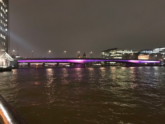 We hebben onze spullen gedropt en zijn toen met de metro naar Londen Bridge gegaan. De Tower bridge is prachtig in het donker: