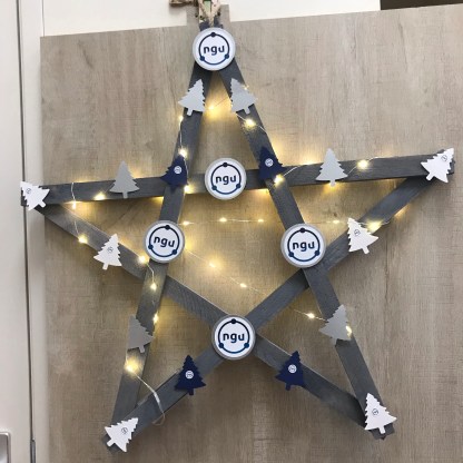 En een ster met de kerstboom punch versierd. De krans heb ik gemaakt met de 2 1/4″ pons en de helaas retired Large letters. Met weinig middelen heb je zo een leuke persoonlijke versiering.
