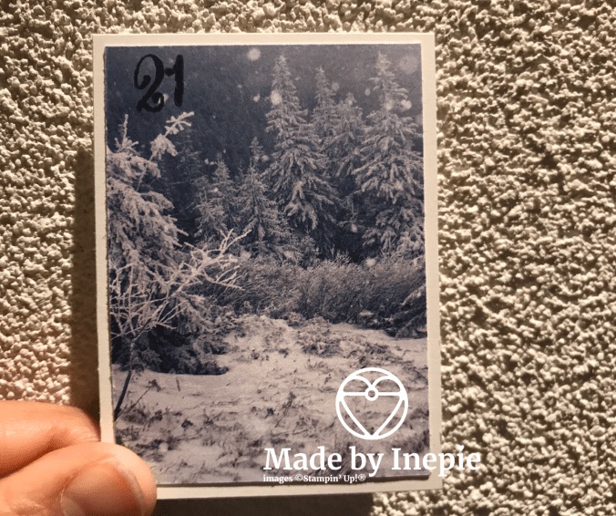 Het is alleen een stukje Dsp geplakt op het basiskaartje. Het mooie Feels Like Frost Dsp is zo prachtig dat het eigenlijks niks nodig heeft. Gelukkig heeft Stampin’Up! besloten dat ze dit Dsp terug laten komen. Daar ben ik en velen met mij erg blij om.