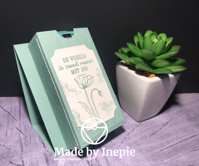 Ik had nog papier over voor de standaard en heb het doosjedeze keer in Pretty Peacock gedaan, vind ik ook erg mooi geworden.