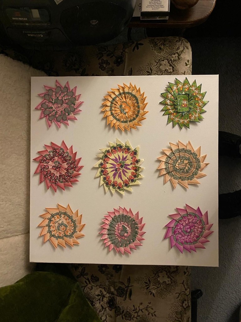 Als je mij op Facebook volgt heb je misschien wel gelezen over ons mam die gisteren eerst heel gezellig via haar computer en mijn telefoon deed videobellen. Michael mijn zoon was zo lief om via teamviewer haar te helpen met computer problemen. Zo gelachen omdat ze Michael opeens levensgroot zag. En genoten van het feit hoe lief en geduldig hij ons mam hielp. Maar opeens werd de verbinding verbroken en kregen we haar ook niet meer via de telefoon te pakken. Michael zei meteen al : het lijkt wel een stroom storing. En toen ik haar eindelijk mobiel te pakken kreeg zat ze inderdaad in het donker. Mijn moeder heeft ernstige Macula Degeneratie en ziet dus slecht. Daarbij is ze klein( ja nog kleiner dan ik) en kon ze niet bij de schakelaars in de meterkast. Michael is toen in de auto gestapt en naar Boxtel toe gereden. Daar braaf zijn handen gewassen en op 1,5 meter afstand van haar gebleven. En de schakelaar omgezet en haar geleerd welke dat is en gelukkig kan ze erbij. Ik had boodschappen voor haar mee gegeven en Michael moest even foto’s nemen van haar knutsel projecten. Ze houdt zich nu bezig met theezakjes knippen en zoals zij het noemt sterren maken. Ik vind het superknap.