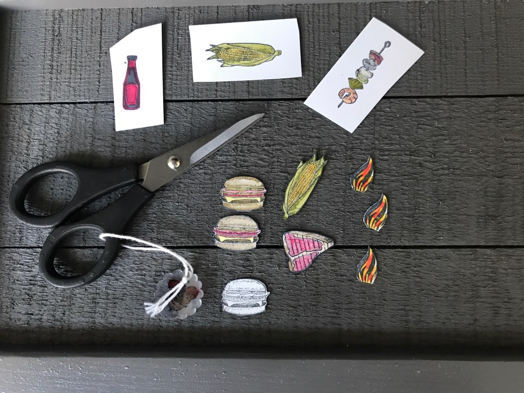 Het werden de hamburger, de tomaten ketchup fles en de sjasliek.