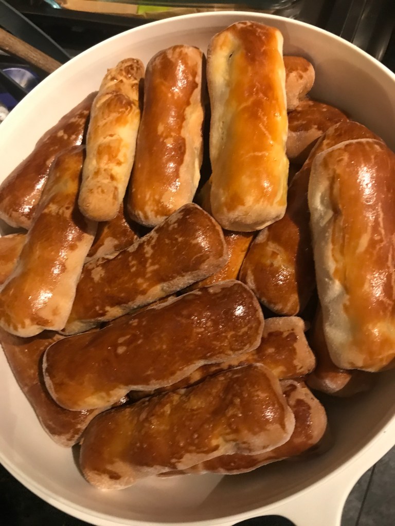Vandaag is het ook eerste Paasdag, dus Willem en ik hebben worstenbroodjes gebakken en een Spongecake voor de jarige.