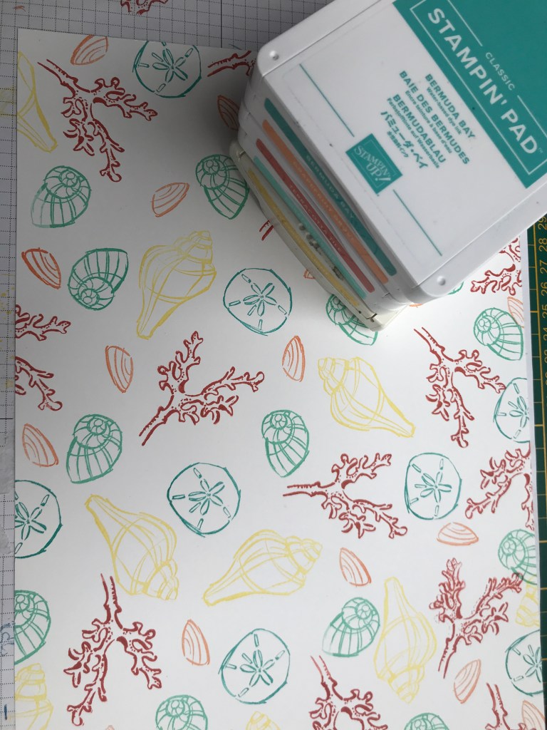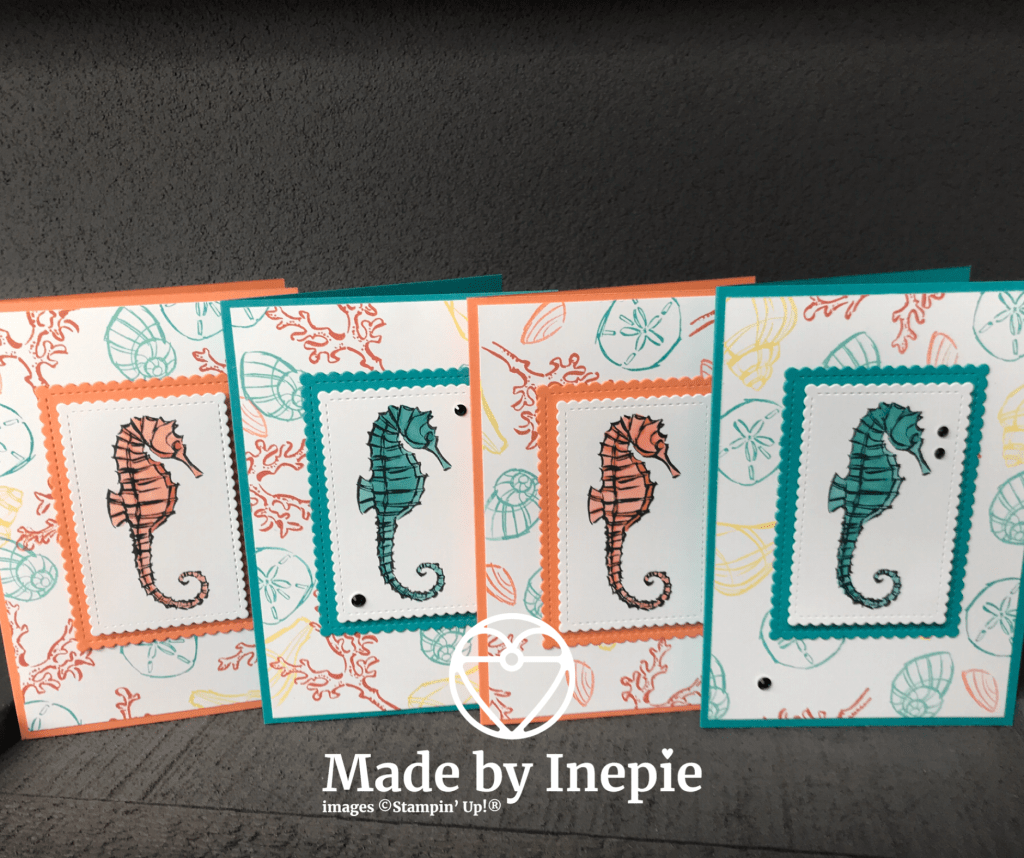 Bij Stampin’Up willen ze ons helpen om te blijven stempelen en hebben ze een kleuren challenge bedacht iedere week geven ze de kleuren aan en zo stimuleren ze onze creativiteit. Je krijgt dan kleuren combinatie die je normaal niet pakt. Ik heb ervoor gekozen om heerlijk te stempelen lekker uit de losse pols en met een set die ik al lang niet had gebruikt: Seaside Notions. De gebruikte kleuren zijn:Bermuda Bay, Daffodil Delight, Grapefruit Grove, Terracotta Tile, Coastal Cabana.