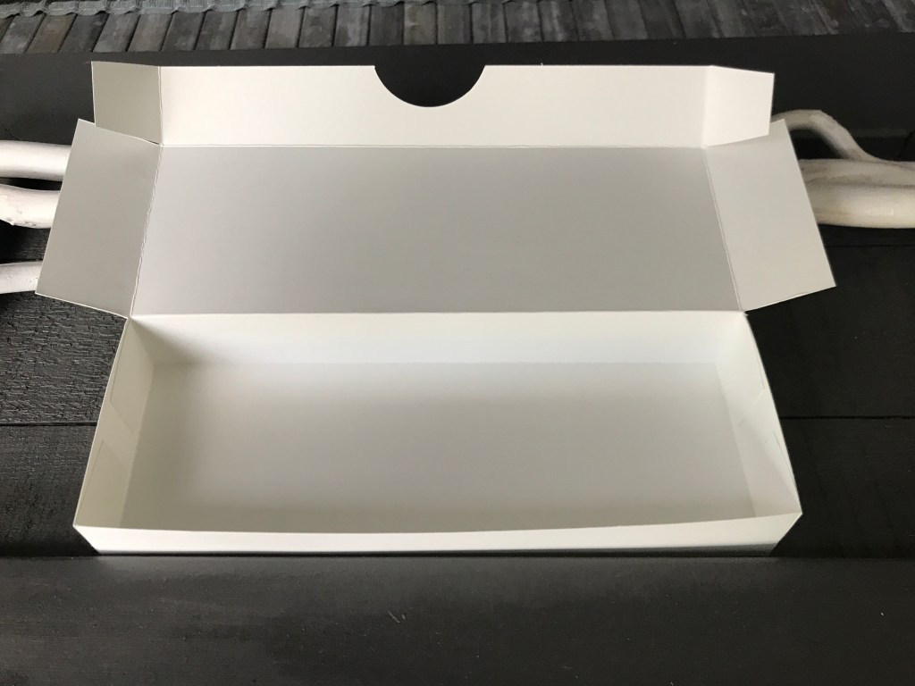 En als die klaar is vouw je het deksel er over heen dan weet je ook zeker dat het past en plakt de laatste flapjes vast. Nu is het doosje klaar en kun je het versieren en vullen.