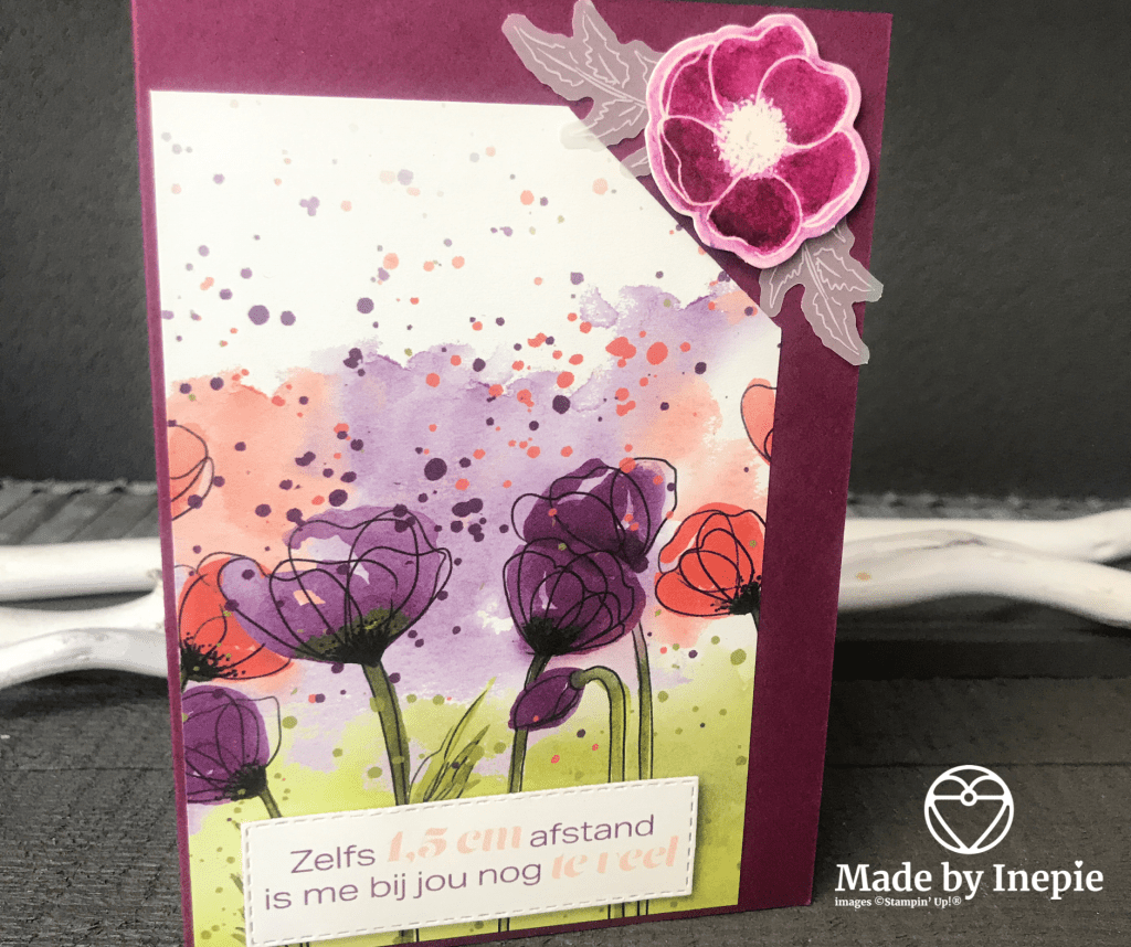 Ik ben nog steeds lekker met het Peaceful Poppies Dsp aan het spelen. Heb genoeg kaart matjes dus kan nog even voorruit. Ik ben tegelijkertijd ook bezig met mijn Stampin’ Up! kast anders in te delen om klaar te zijn voor het nieuwe seizoen. En toen vond ik de Peaceful Poppies Elemements. Ik vond deze zo mooi dat ik ze eigenlijk te weinig gebruikt hebt dus nu komen ze goed van pas bij mijn Love It Chop It kaartjes.