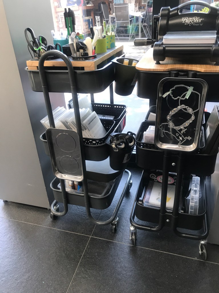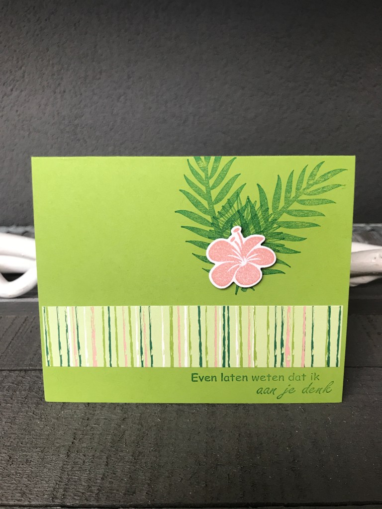 Natuurlijk gaat er een mooie kaart richting Lida en naar een meneer die 98 wordt ( zag weer een oproep voor een kaartje) naar mijn tante in het verzorgingstehuis die gelukkig de Corona heeft overwonnen en naar nog wat klanten en vrienden en familieleden. Sommige krijgen weer een doorstuurkaartje want daar kreeg ik veel enthousiaste reacties op. Voor mijn trouwe Koffie en Kaart klanten ben ik ook nog bezig om een kaartenpakketje te maken zodat ze thuis creatief aan de slag kunnen. Tel daarbij op nog twee opdrachten, het huishouden met 6 personen de hele dag thuis, het opnieuw indelen van mijn Stampin’ Up! kast en Workshop trolleys en je ziet hoe druk ik het heb.