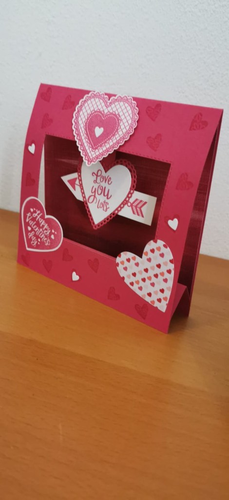 Mijn model was de Swinging Tent Fold card. Deze had ik gezien bij Sam van Mixedupcrafts.com. Ik had deze kaart in februari al gemaakt voor Mandy en Bibi in opdracht van Gert en Nick: