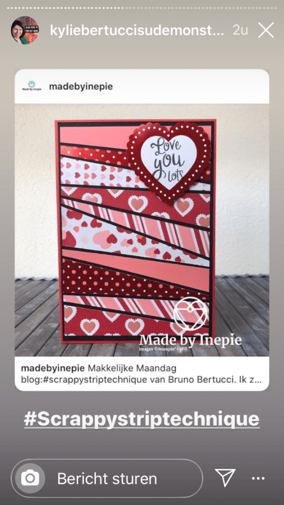 Ik ben al jaren een grote fan van Kylie en haar man Bruno. Bruno had laatst de Scrapy Strip Technique bedacht. Die is echt superleuk dus ik had er een kaartje mee gemaakt. Van de week zag ik dit opeens langskomen op Instagram: