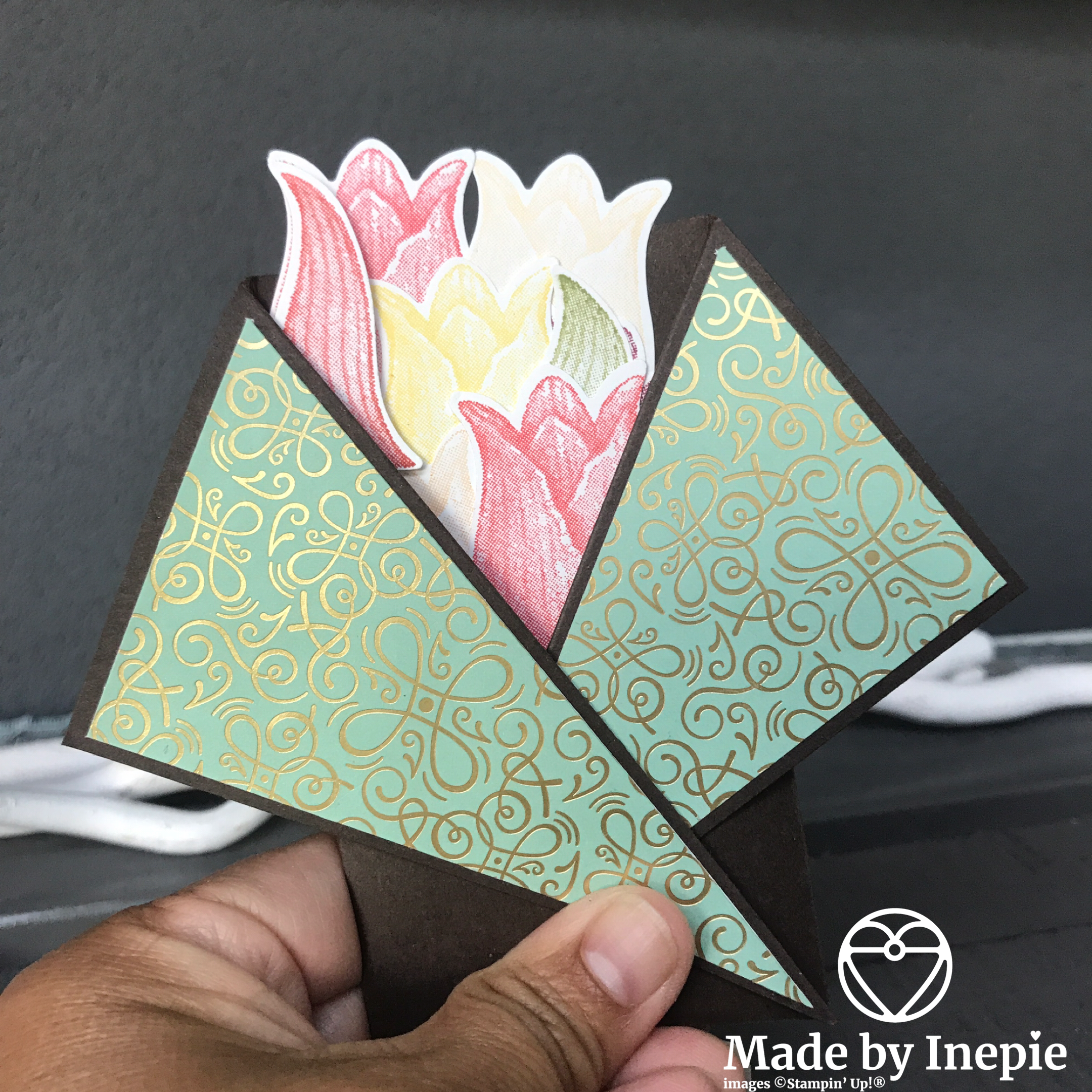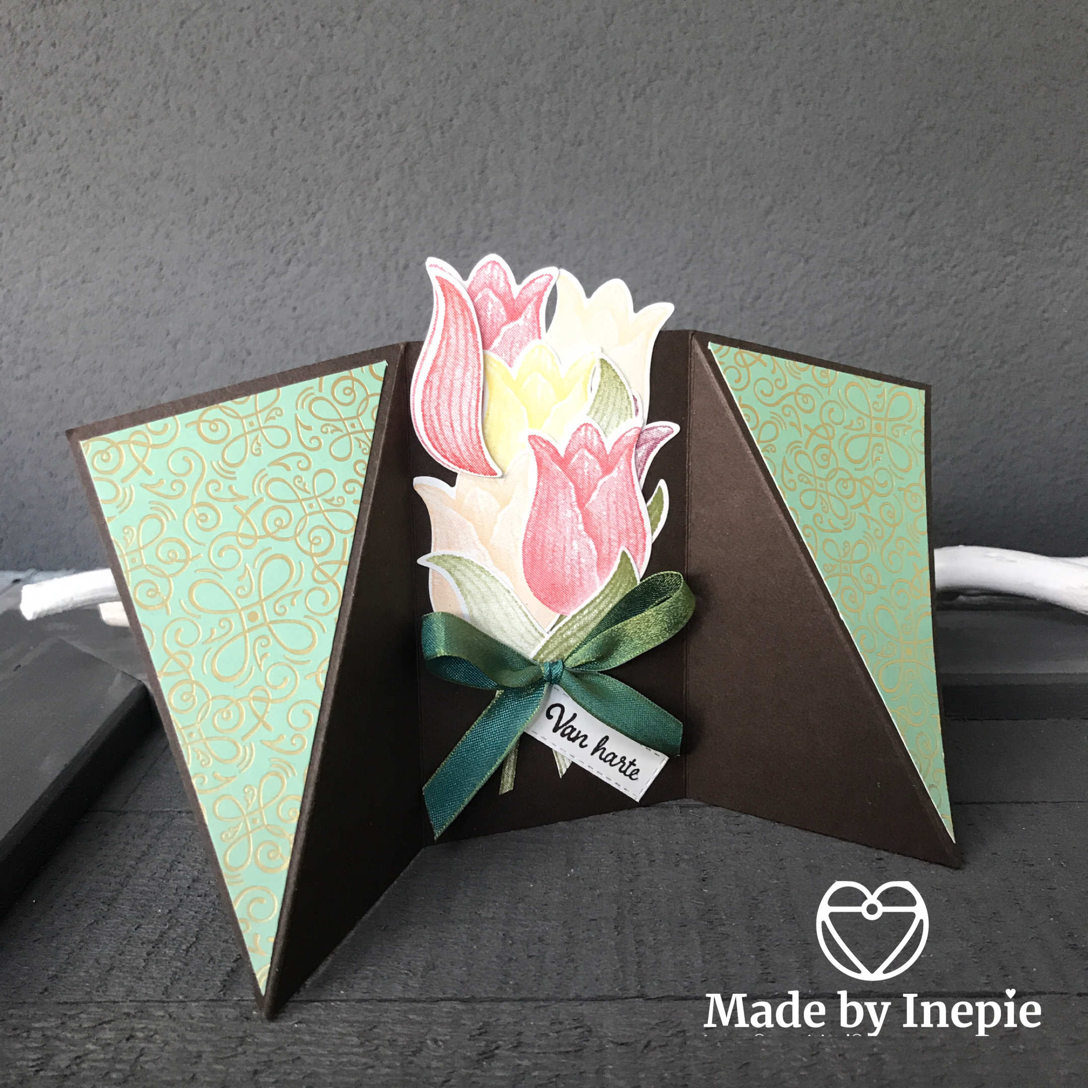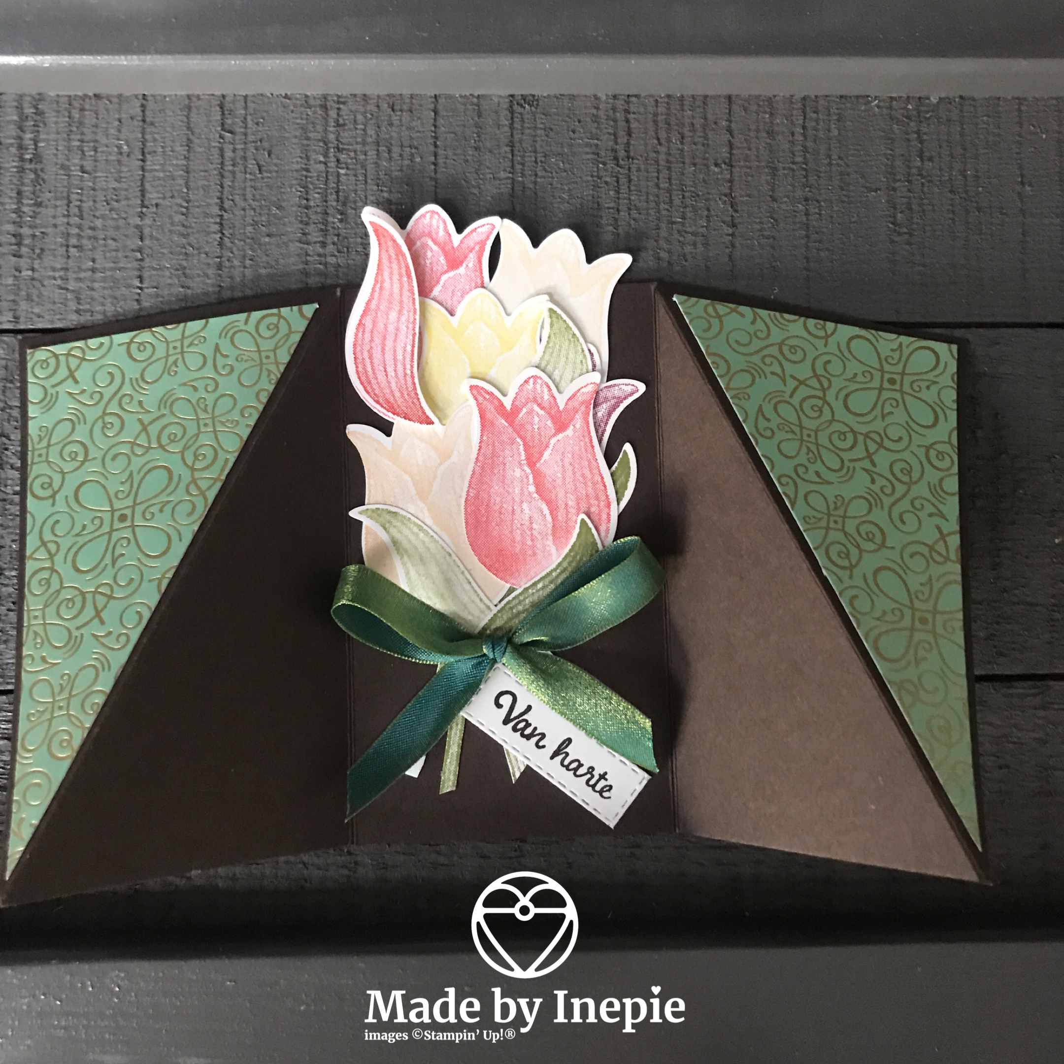 Dus toen moest ik snel nog een kaartje maken. Ik heb de Tijdloze Tulpen gebruikt met de bijpassende pons. Een leuk boeketje is het geworden.