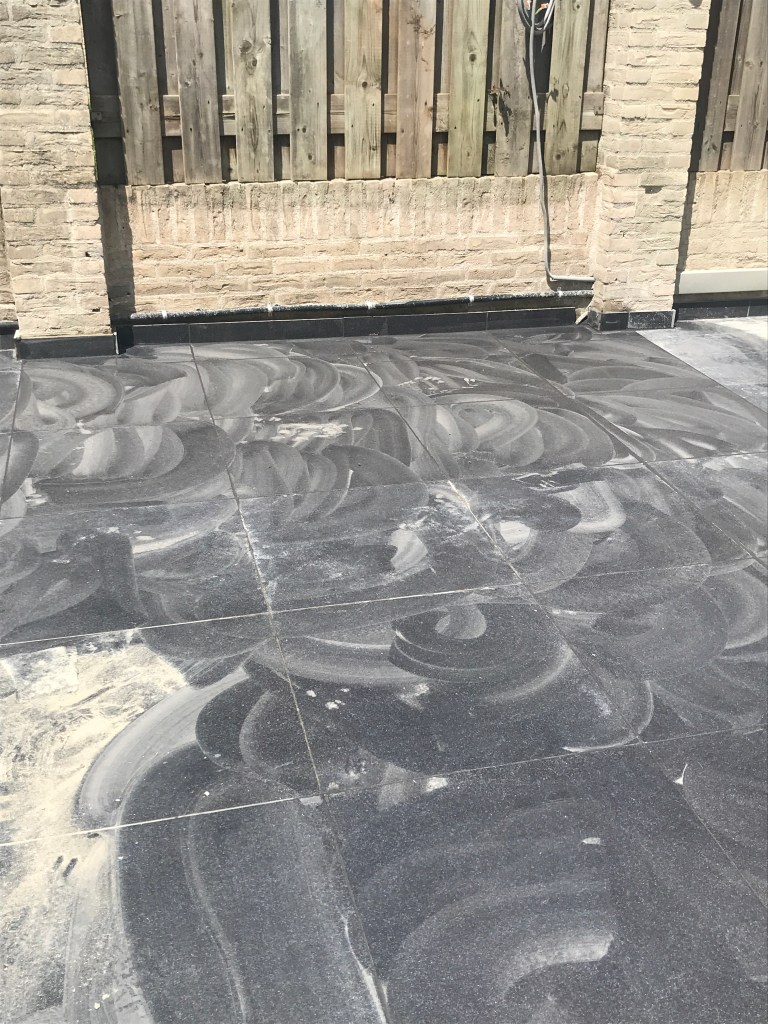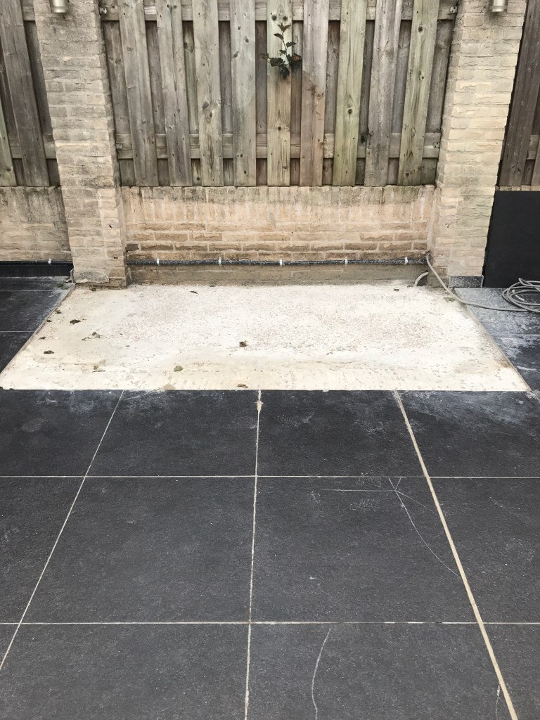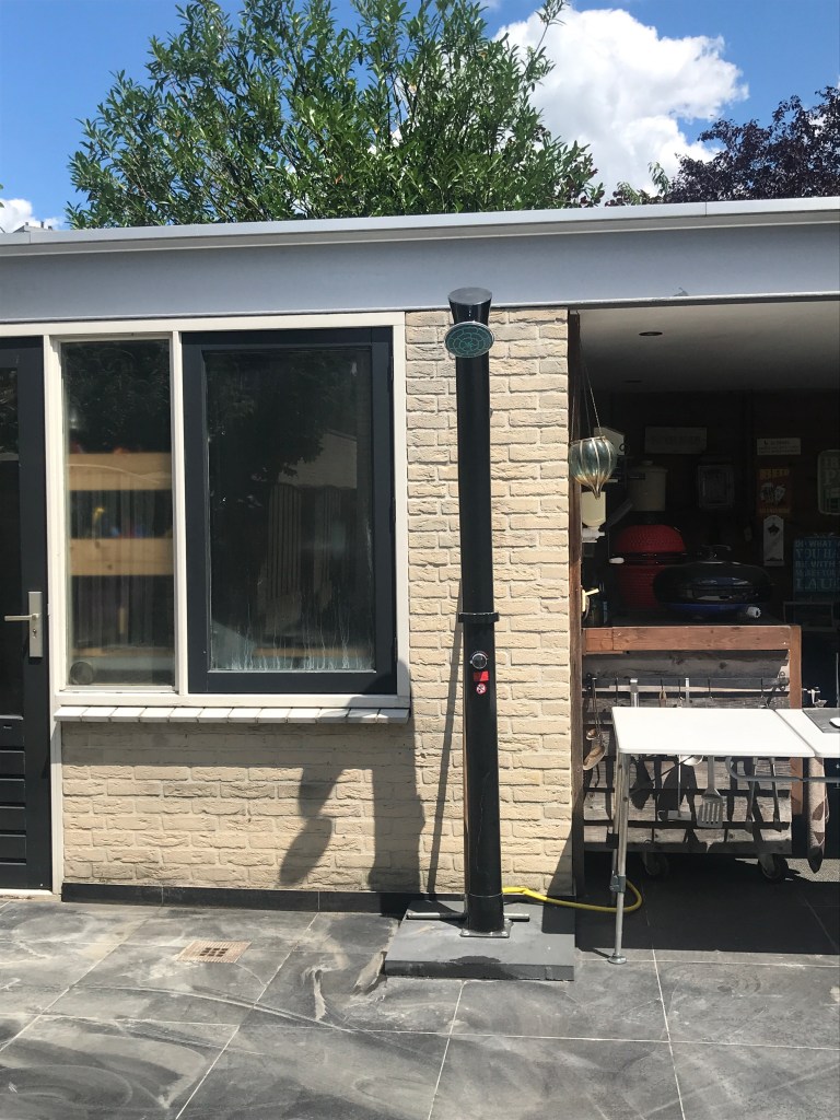 Willem heeft van mij een buitendouche gekregen voor bij de jacuzzi. De tegelzetter stond hier om 8.00 uur al voor de deur: het laatste karweitje