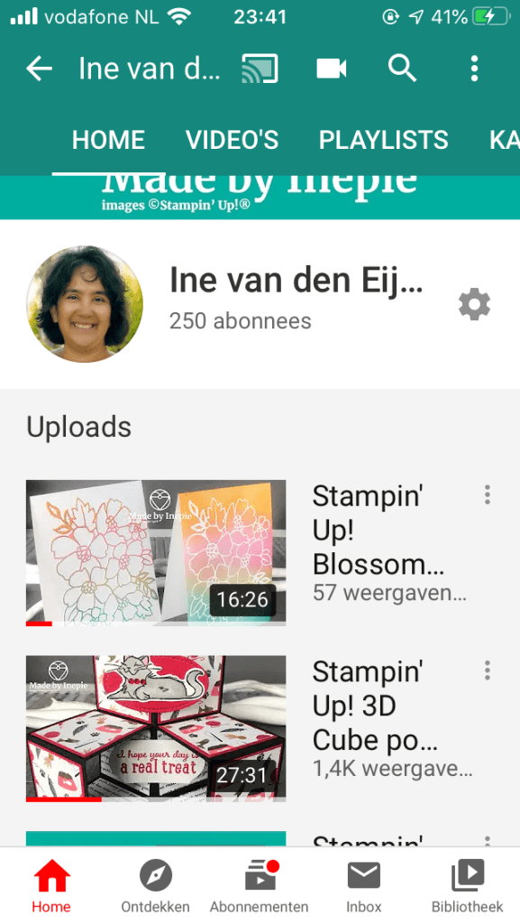 Dit zou de week zijn dat ik niet iedere dag zou bloggen en minder met Stampin’ Up! bezig zou zijn. Nou dat werd toch meer dan ik dacht want opeens gingen mensen mijn filmpje van de 3D Cube Pop up Box bekijken en massaal werden ze lid. Ik wist niet wat mij overkwam iedere keer als ik keek had ik weer meer weergaves en abonnees. Binnen een week haalde ik mijn 200ste abonnee en voor het eerst haalde ik de 1K weergaves. Meer dan 1400 mensen hebben mijn filmpje nu bekeken en ik heb nu 250 abonnees: geweldig!