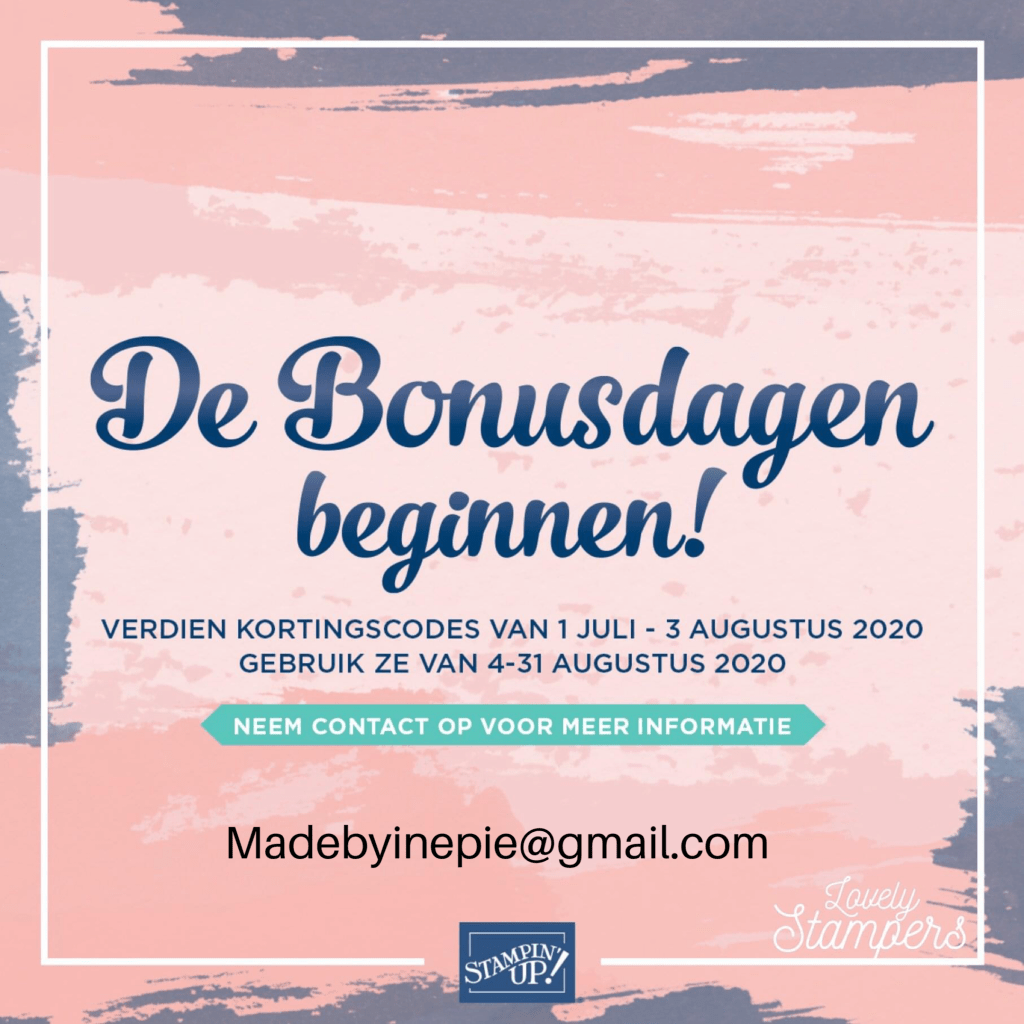 Wil je een bestelling plaatsen dan help ik jou graag mail mij op Madebyinepie@gmail.com. En profiteer van de Bonusdagen.