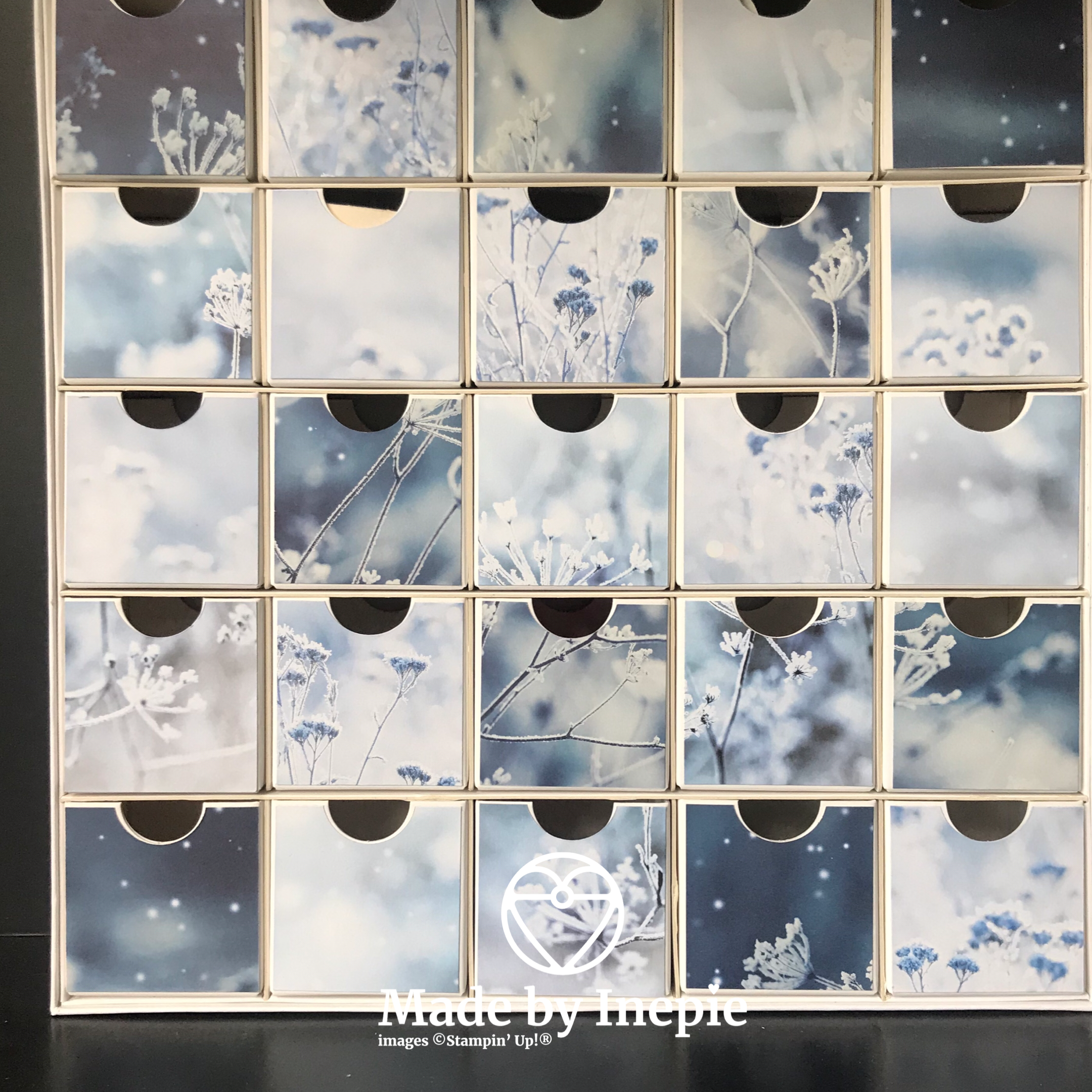 Deze advents kalender heb ik vorig jaar gemaakt maar na de kerst draai ik alle bakjes om en heb ik deze zo het hele jaar staan. Ideaal voor kleine embelishments of kleine stansjes.