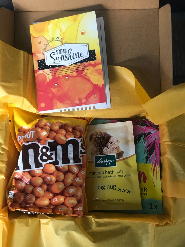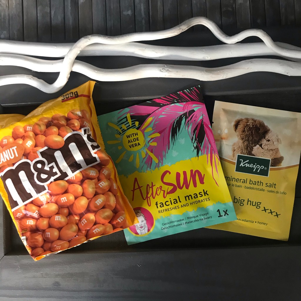 Iets lekkers om te eten, een fijn maskertje en wat badzout. Super leuk verwen cadeau doosje geworden zo toch?