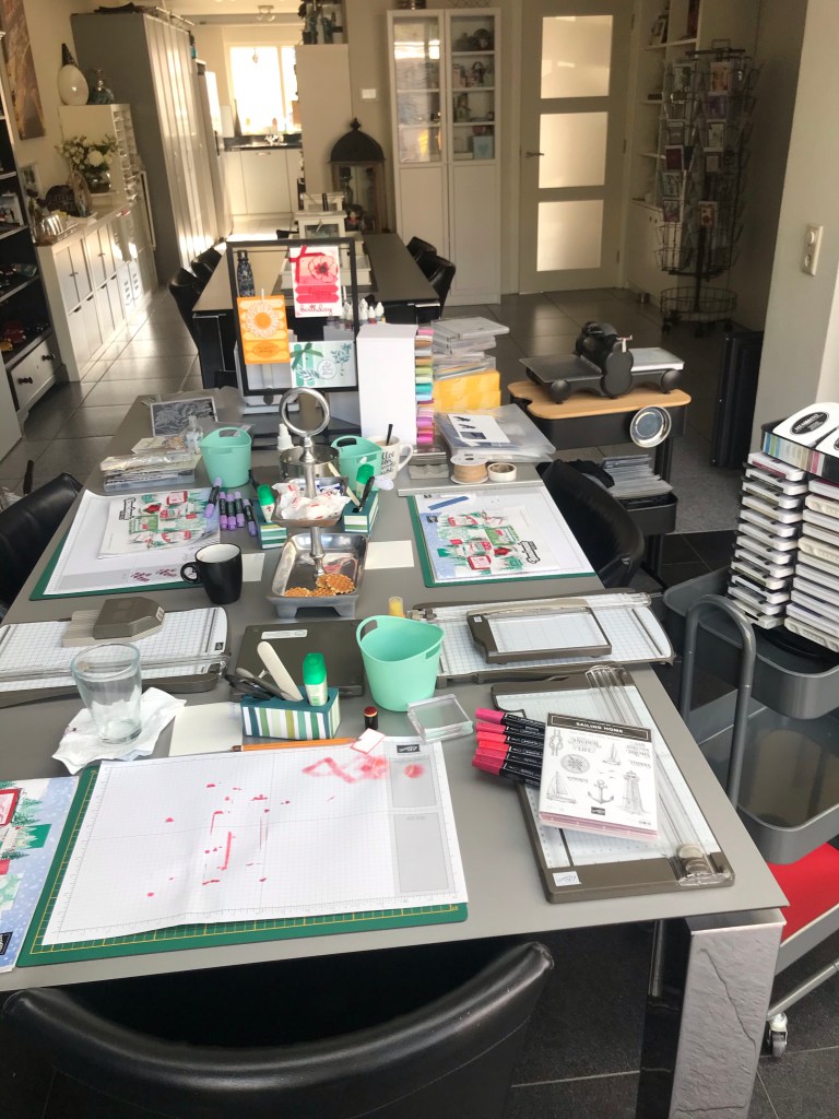 Vandaag 3 dames op Koffie en Kaart gehad. Dame nr 4 belde helaas vanochtend af. Maar ik zorg dat ze een pakketje krijgt om zelf een kaart te maken.