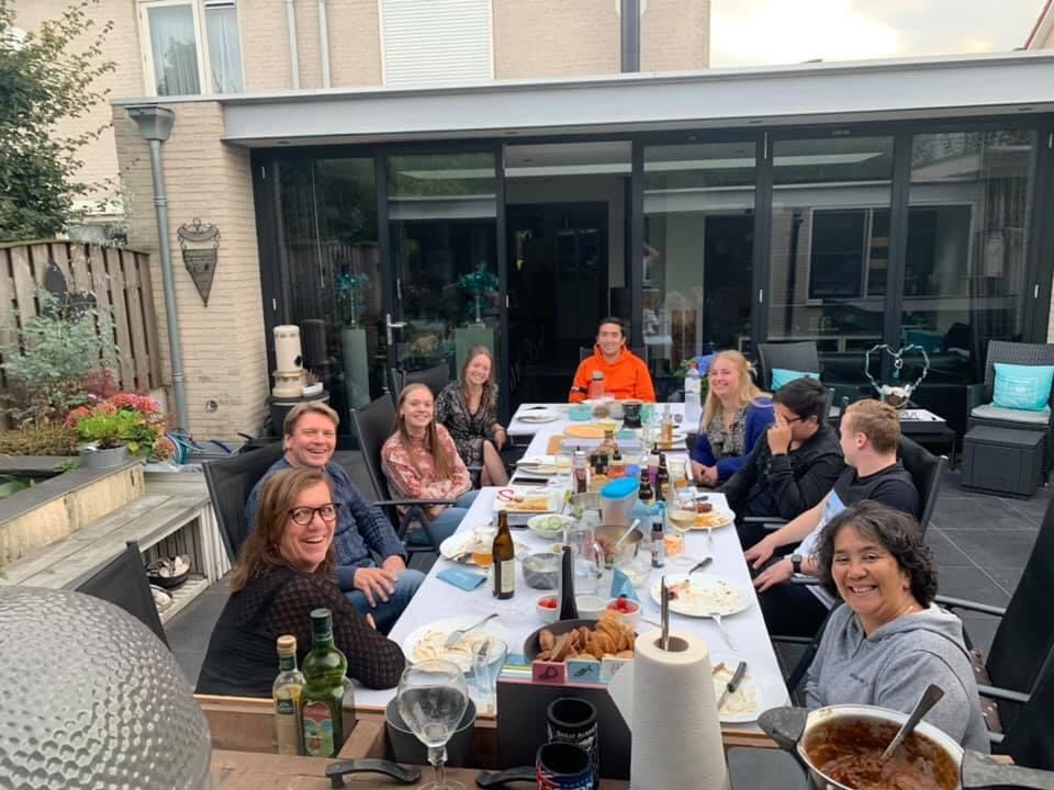 Geprobeerd om de tafelschikking zo Corona proof te maken als mogelijk was en braaf de elleboogbox gegeven. Heerlijk gegeten, gekletst, gelachen herinneringen opgehaald: topavond.