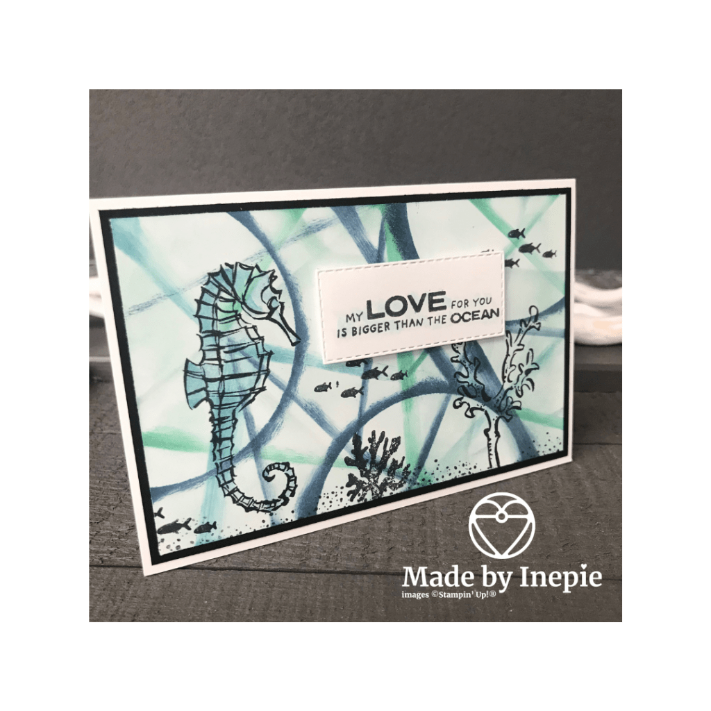 Weer een kaartje met die leuke techniek. My love for you is bigger than the ocean. Mooie toepasselijke tekst.