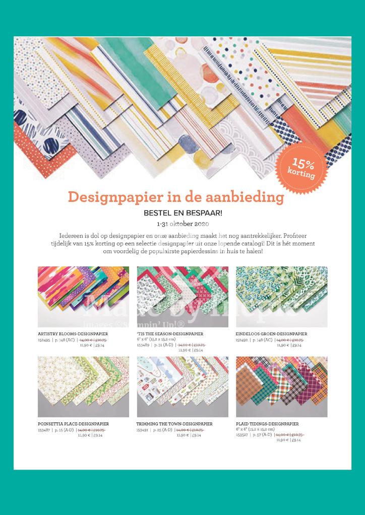 Deze visgraat techniek stond al lang op mijn lijstje om te maken. Mijn teamgenootje Melissa die ook mijn swapmaatje was legde de techniek uit met washi tape. Maar ik had geen washi tape dus heb ik strookjes Dsp gebruikt. Om het wat makkelijker te maken heb ik eerst op de mat waarop ik het patroon ging maken een stuk adhesive sheet geplakt. Daarna strookjes Dsp in verschillende breedtes opgeplakt. Het dsp wat ik gebruikt heb is Artistry Blooms en laat deze nu de maand oktober in de aanbieding zijn: 15% korting!