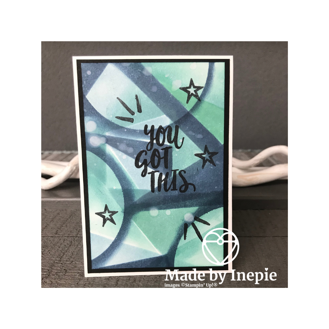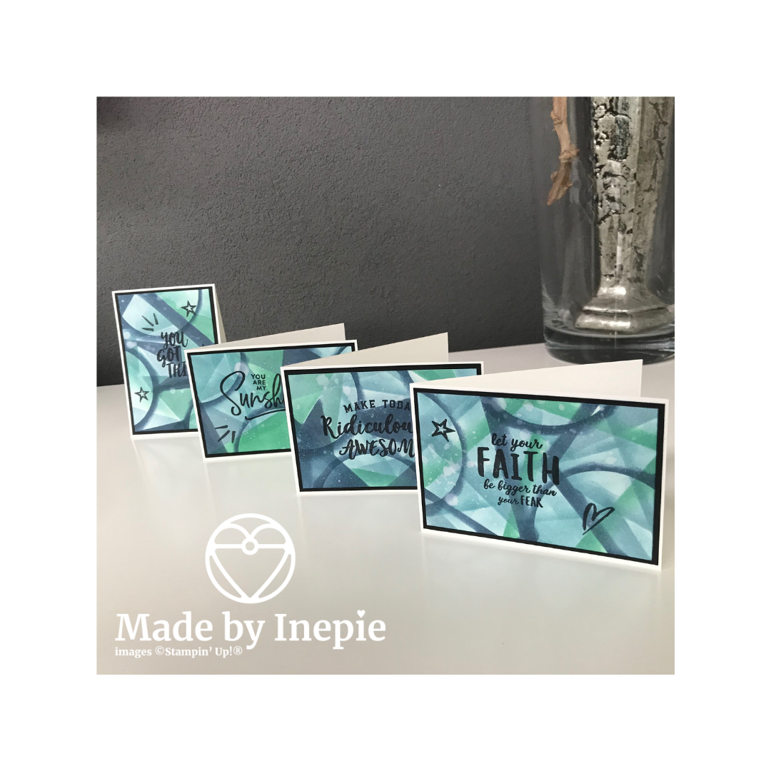 De achtergronden heb ik weer gemaakt met de techniek die ik gezien heb bij Karen Hadler. Super leuk om te doen. En deze keer heb ik wat dikkere lijnen gemaakt. En die passen perfect bij de sterke teksten.