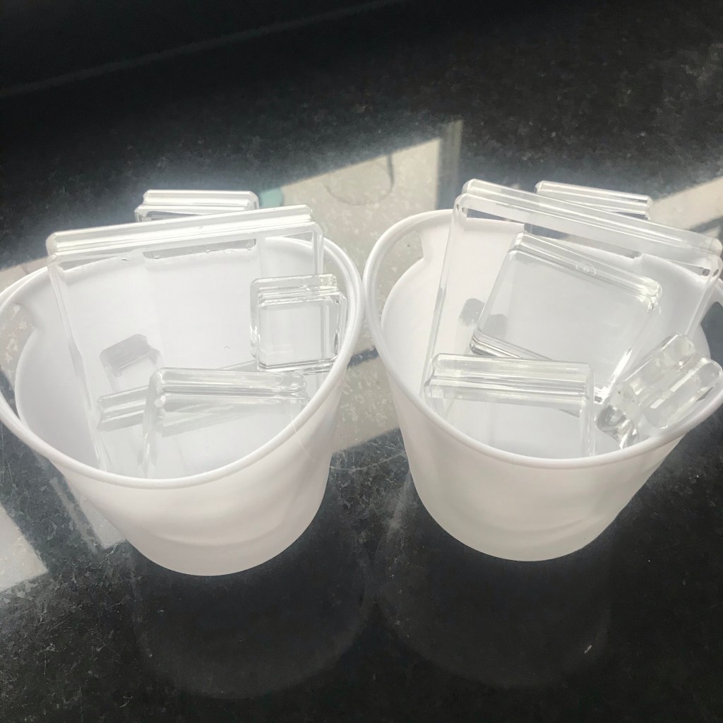 De clearblocks had ik in de vaatwasser gedaan en ieder had haar eigen bakje.