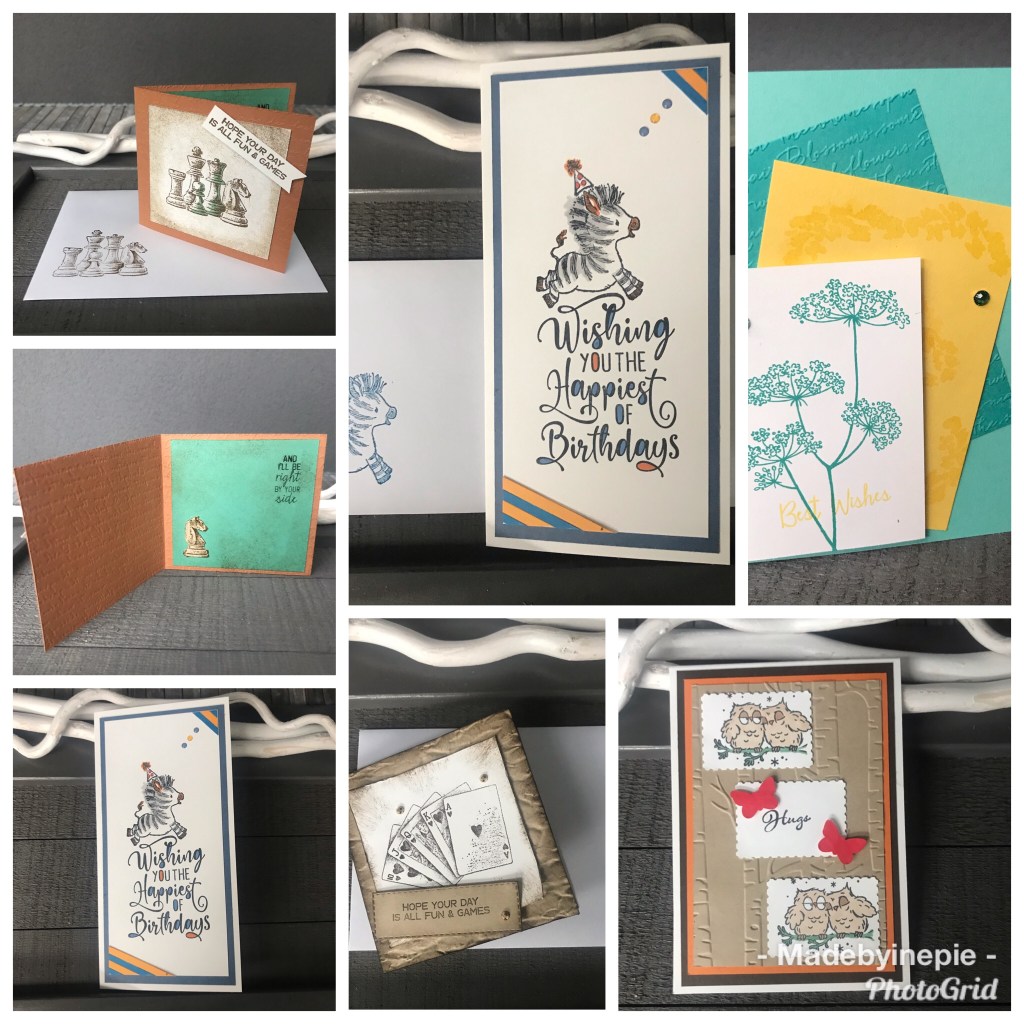 Dit zijn de kaarten die de dames gemaakt hadden. Mijn voorbeeld kaarten zie je hier vast verschijnen in de loop van de week. Ik had er 10 gemaakt en ze mochten er 3 maken.