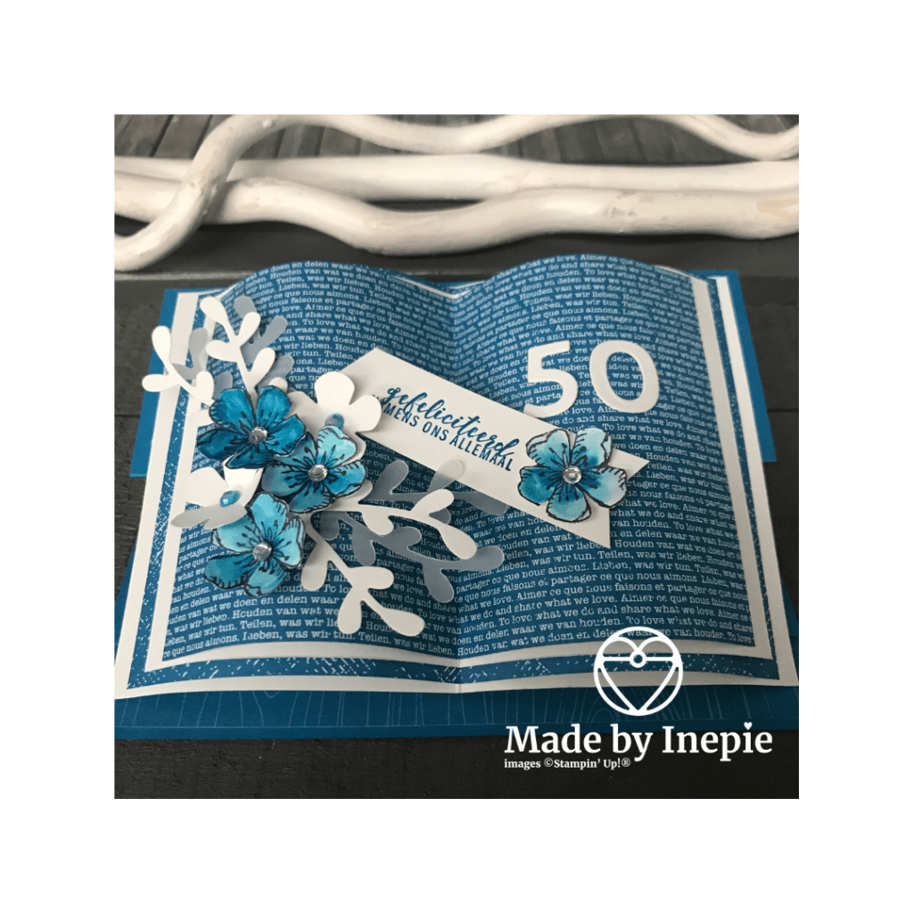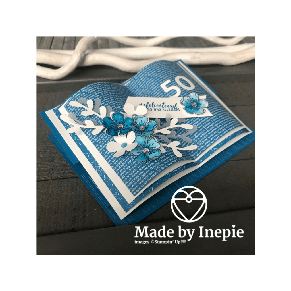 Mijn teamgenootje Simone Denekamp van Stamped by Simone had laatst een heel leuk project en er een YouTube filmpje van gemaakt. Ik vond het fantastisch en zette het op mijn to do list. Toen ik een opdracht kreeg om een kaart te maken voor iemand die 50 werd en van lezen hield wist ik dat ik deze nu ging maken: de Open Book Easel card.