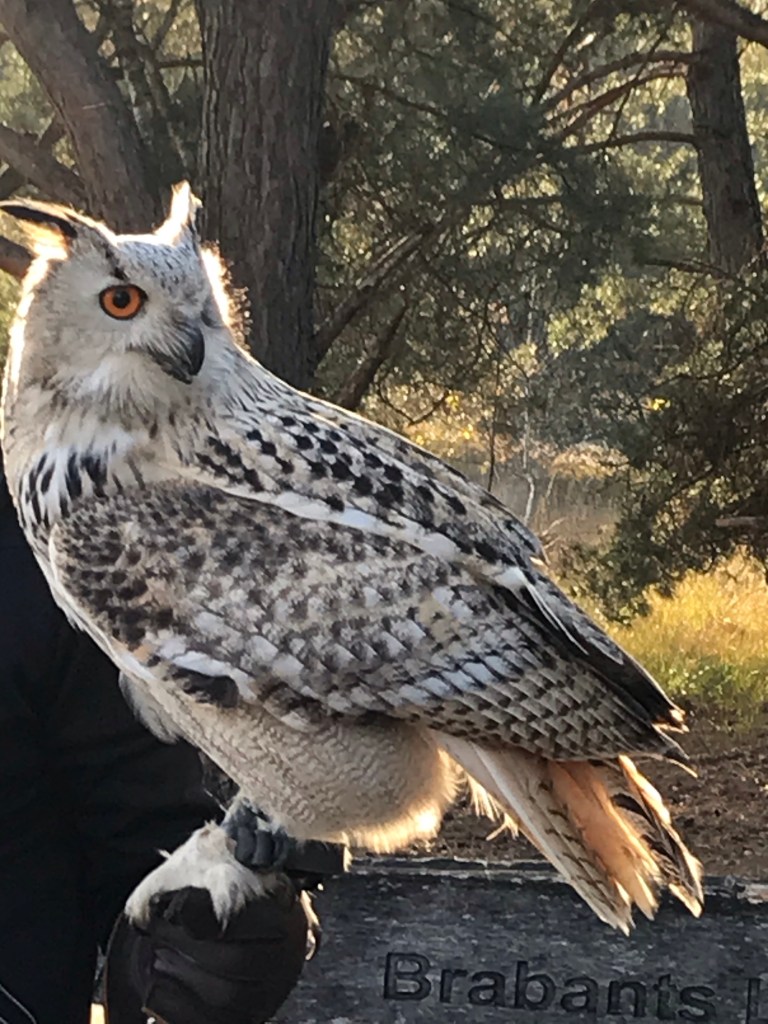 Dank je wel! Ja dat voelde echt als een cadeautje,Willem had het niet gezien, hij fietste voorop. Maar ik zag iets tussen de bomen: een uil op een bankje. Dacht eerst nog aan een houten beeld. Maar ze was echt. Leuk dat haar begeleider alle tijd nam om ons foto’s te laten maken. En over haar te vertellen.