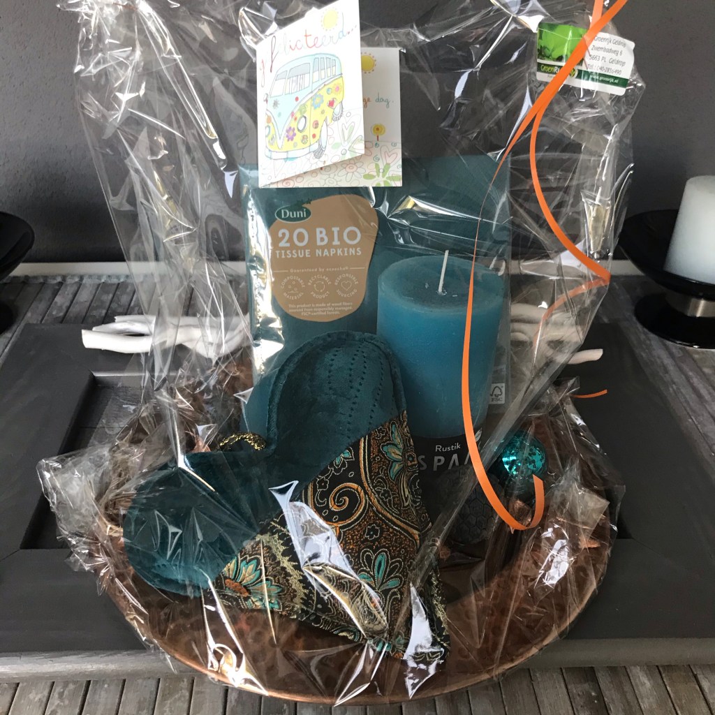 Van lieve vrienden kregen we dit cadeau pakket niet Bermuda Bay maar meer richting Pretty Peacock en dat past perfect bij elkaar. Erg blij mee want mijn vriendin stond er onverwachts mee aan de deur.