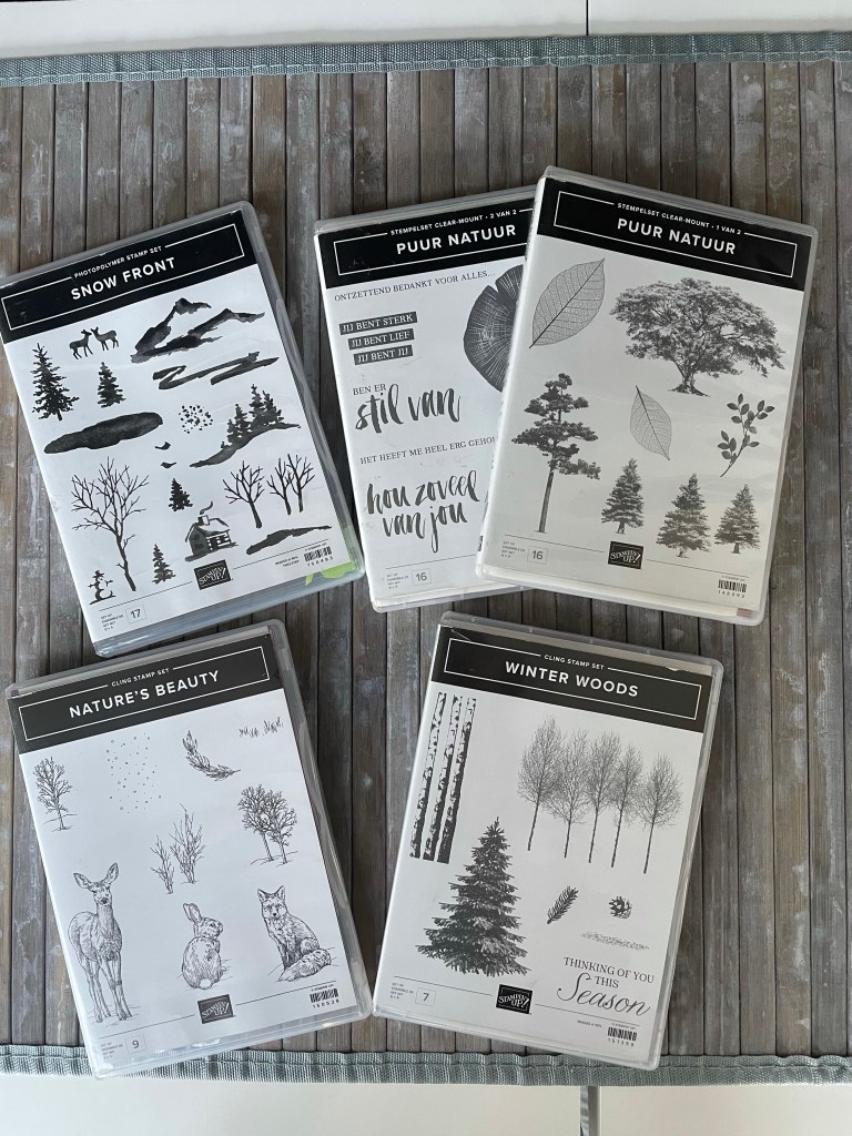 Bij zo’n foto denk ik meteen aan de reflectie stempel techniek. Hier gebruikte ik de Lovely as a Tree set voor maar die is helaas retired. Die stempelset doe ik nooit weg want dat is 1 van mijn eerste Stampin’Up stempelsets. Gelukkig hebben we andere mooie bomen sets in de catalogus staan. Zoals de Nederlandse stempelset Puur Natuur, Snow Front,Nature’s Beauty en de prachtige Winter Woods. Dus ik kan van de week lekker aan de gang.