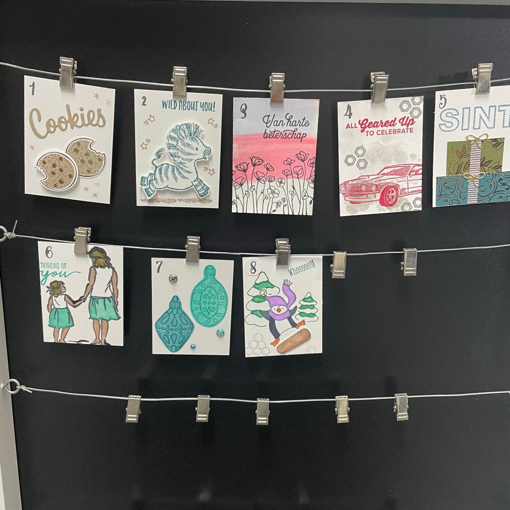 - Dag 7: Sinterklaas is weg dus ons huis is in Kerstsfeer. Willem heeft het Kerstdorp opgezet. Dit keer in mijn kast waar ik voorheen mijn Stampin’Up! Spullen in bewaarde.