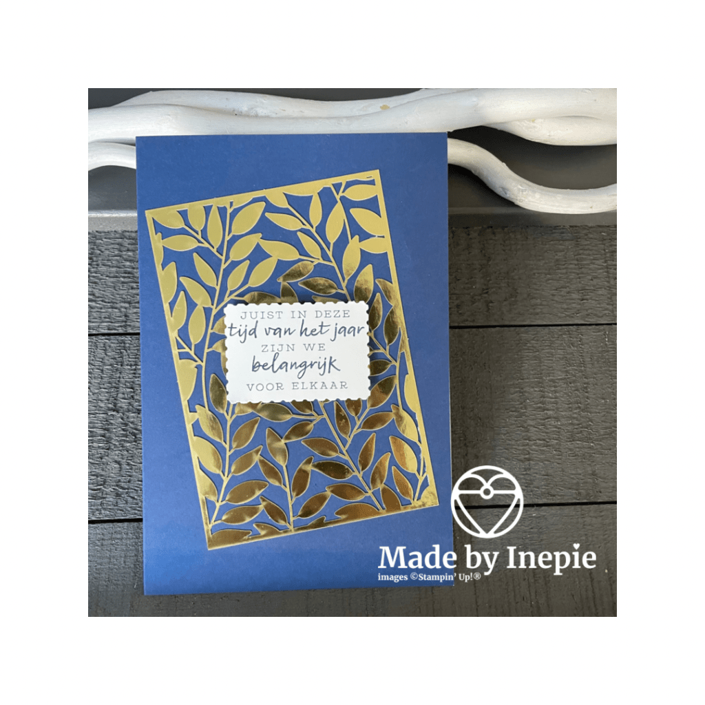 Dit prachtige gouden Dsp heb ik speciaal bewaard voor de kerst. Daar hoort echt Bling Bling bij voor mij. Het heeft prachtig kaart frontjes, losse blaadjes maar ook deze geweldige vormen die ik in combinatie met de Rectangular Postage Stamp pons heb gebruikt en de 2” circle pons. Het is nog steeds te bestellen bij mij.Een heel pak kost € 18,00.