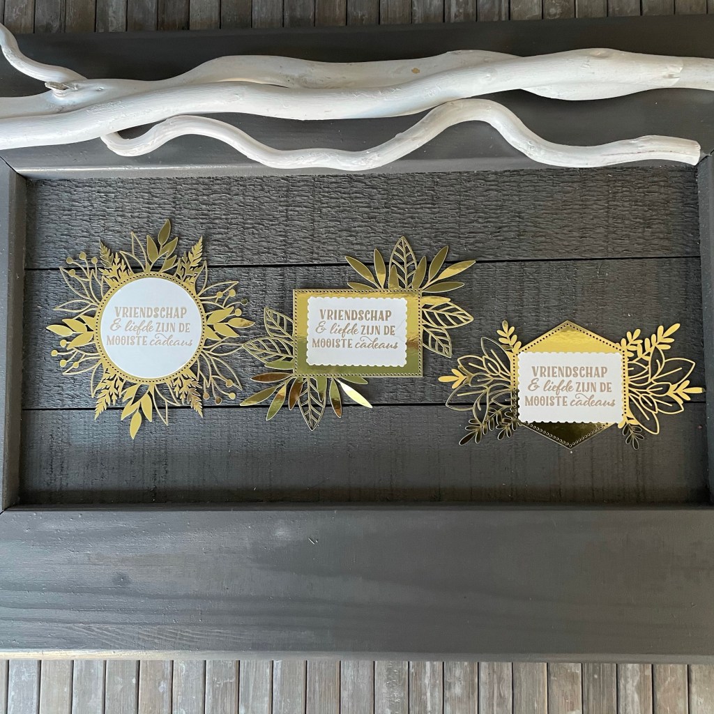 Met deze stansjes en de mooie tekst uit de stempelset Cadeauseizoen, heb je heel snel een mooi cadeau label.