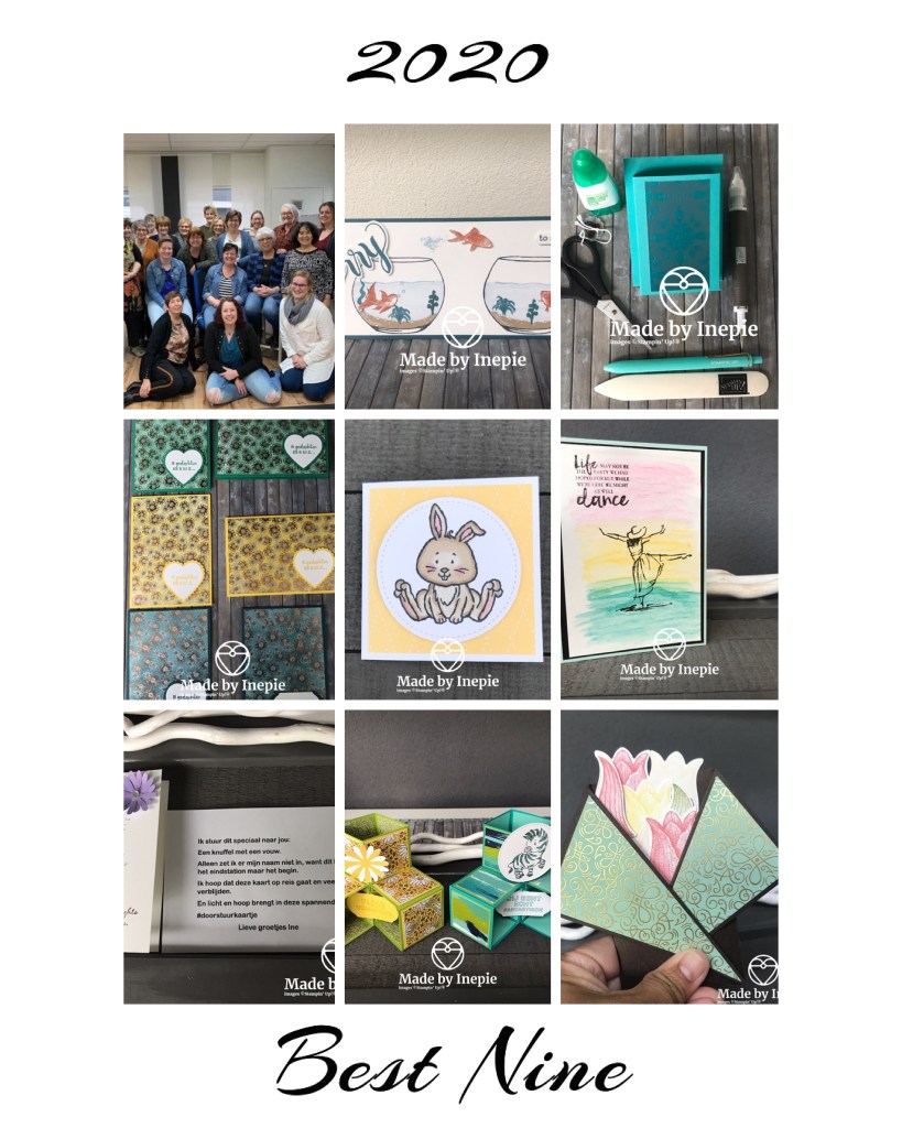 Ook hier een terugblik op 2020. De Corona hakte er hard in. Koffie en Kaart middagen en workshops die niet door konden gaan. Wat mijn job zo leuk maakt, het samen knutselen, was minimaal. Wel heb ik 100 kaarten gedoneerd aan een zorginstellingen, heel veel kaartjes gratis op verzoek verzonden. En zelf een doorstuurkaartje gemaakt om toch wat licht te brengen bij de mensen. 2020 was ook het jaar van mijn grootste YouTube succes mijn filmpje van de 3D Pop Up Box is 4326 keer bekeken! En ik ging van 85 abonnees naar nu 462. Zo trots op mijzelf. Filmpjes maken vind ik nog steeds heel spannend maar de likes en lieve commentaren stimuleren mij toch om deze drempel steeds over te gaan. Want ik wil heel graag mijn enthousiasme van deze geweldige hobby en fijne producten delen met jullie. Ik wil hierbij alle lieve klanten, workshop dames, volgers van mijn blog, YouTube kanaal, en Instagram account bedanken voor jullie support.Jullie maken dat dit the best job ever is! Hopelijk wordt 2021 een beter jaar met veel workshops, evenementen en een goede verkoop van alle mooie producten van Stampin’Up! want de komende catalogus is weer fantastisch en de Sale-A-Bration folder met de gratis te krijgen producten is helemaal top! En vergeet niet als je koopt bij een kleine zelfstandige doet deze thuis een happy dance!💋❤️