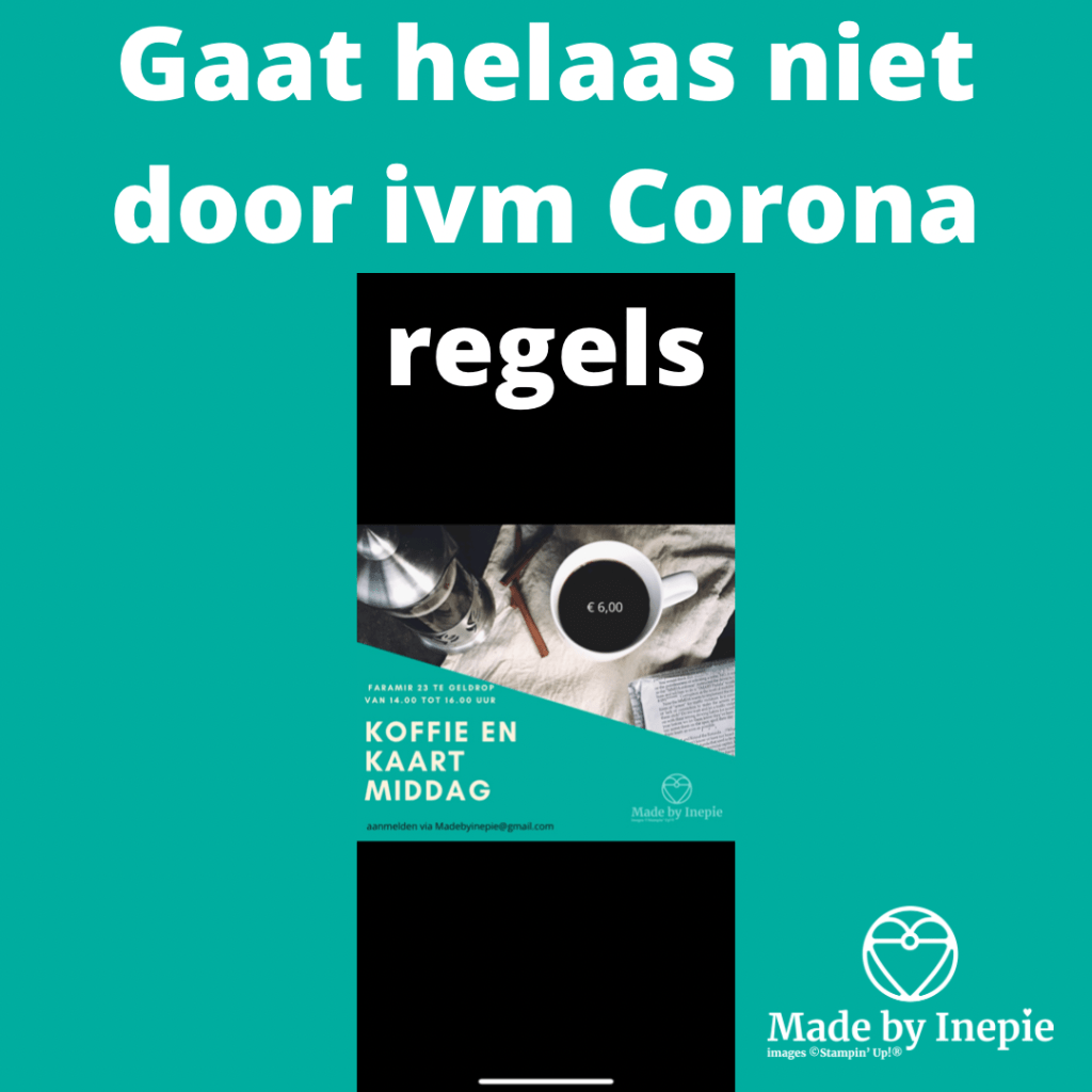 Ik heb al ideeën klaar liggen voor workshops maar plan ze nog niet in tot na 19 januari als we hopelijk weer wat meer mogen. Dus hou mijn blog in de gaten. Wil je de Koffie en Kaart bijwonen of een bestelling plaatsen mail mij dan op madebyinepie@gmail.com