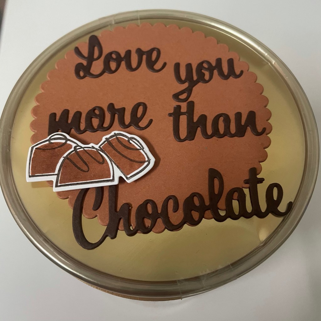 Met de bundel Nothings better Than heb je zo snel een leuk cadeautje. Met de Layering Cirkel Dies een grote scalloped cirkel uitgestanst. De bonbons gestempeld en uitgestanst net als de woorden, opplakken en klaar. Easy Peasy.