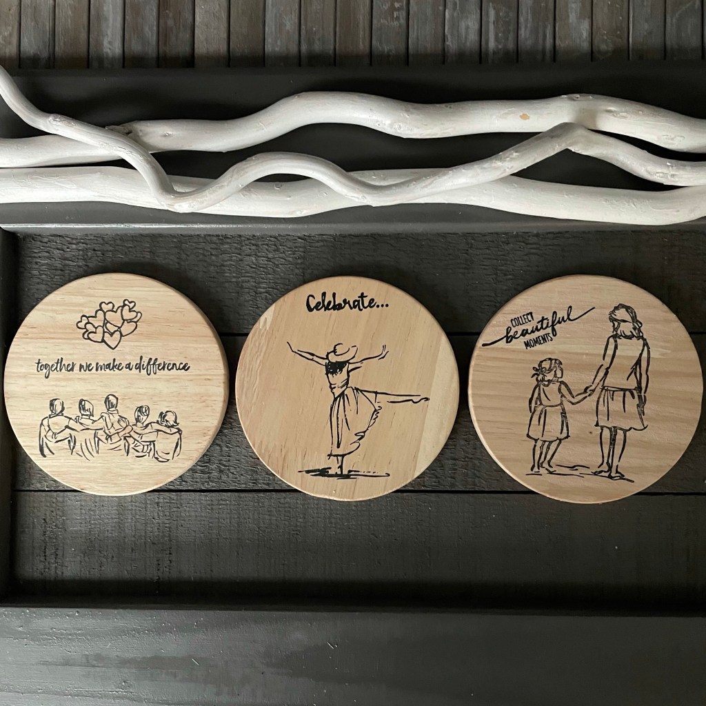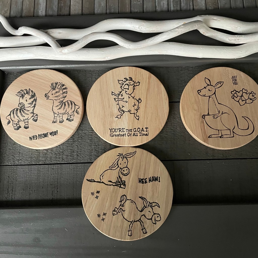 Vandaag iets heel anders dan een kaart. Ik heb met Stazon inkt houten onderzetters bestempeld. Zo leuk!