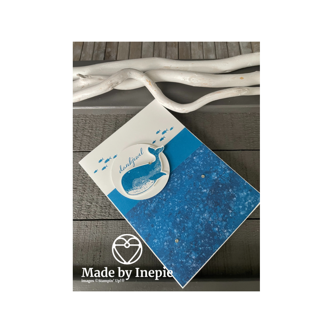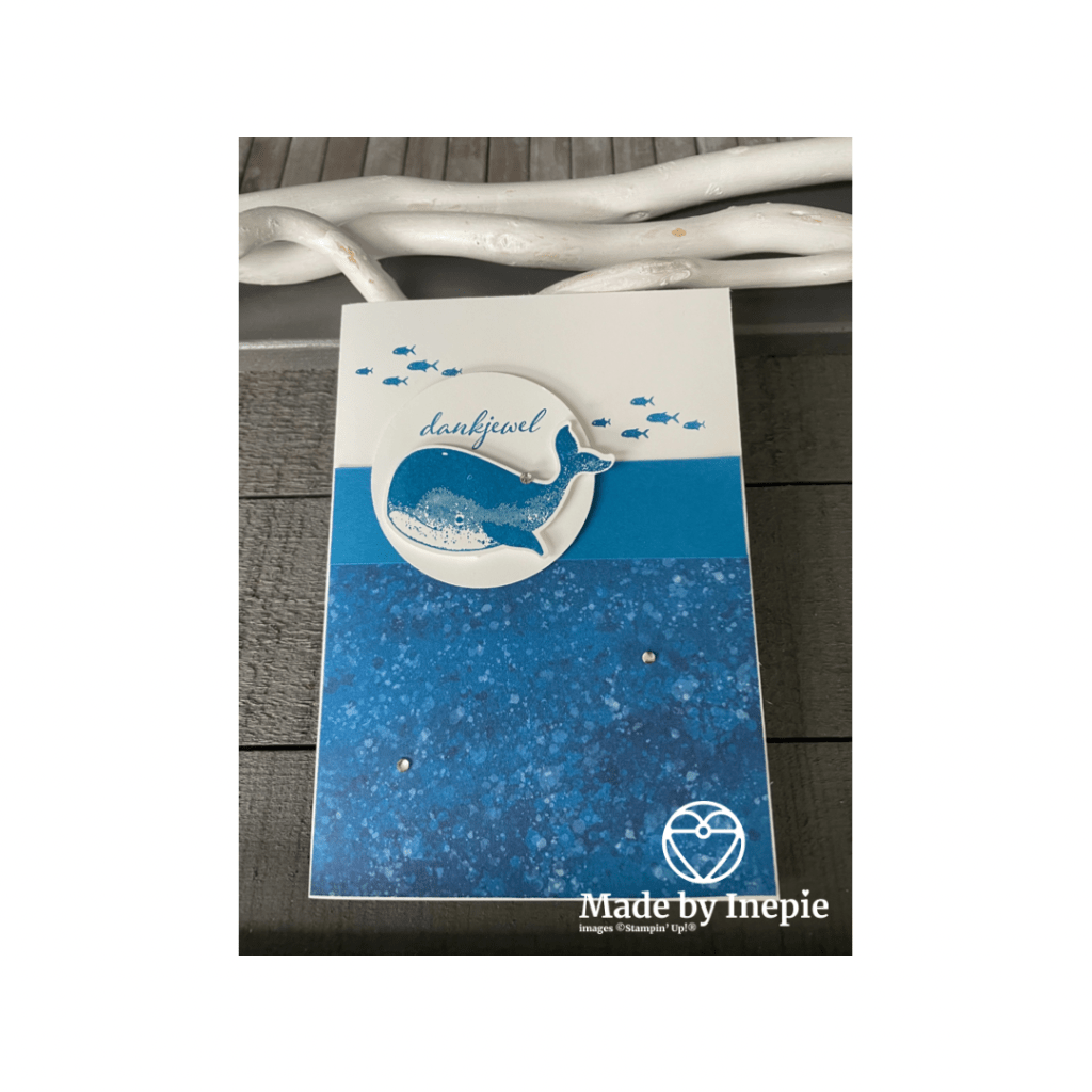 Vandaag is het Blue Monday. De meest depressieve dag van het jaar dus heb ik een leuk eenvoudig blauw kaartje gemaakt met het mooie Whale of a Time Dsp en de bundel Whale Done.