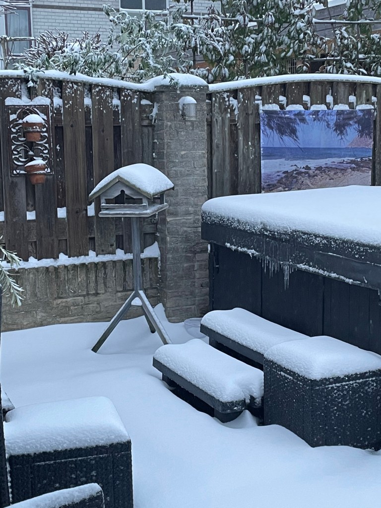 En hoewel ik niet echt een sneeuw liefhebber ben, kun je wel mooie foto’s nemen. Het liefste zit ik nu binnen bij de open haard te knutselen. Maar aan de andere kant is het ook wel speciaal om even te gaan wandelen en ook de jacuzzi lonkt.
