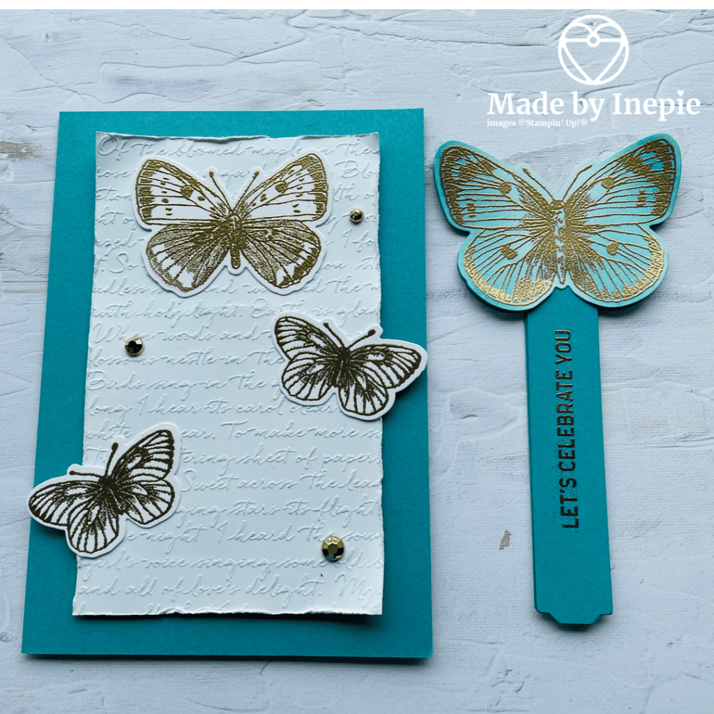 Ik had net mijn Vlinder boeket producten binnen dus die wilde ik jullie echt laten zien. Zo mooi! Vanaf 2 maart kunnen jullie die bij mij bestellen. En ik creëerde een kaart met een extraatje: de vlinder in Bermuda Bay kun je uit de kaart halen en dan heb je een boekenlegger of een servethouder.