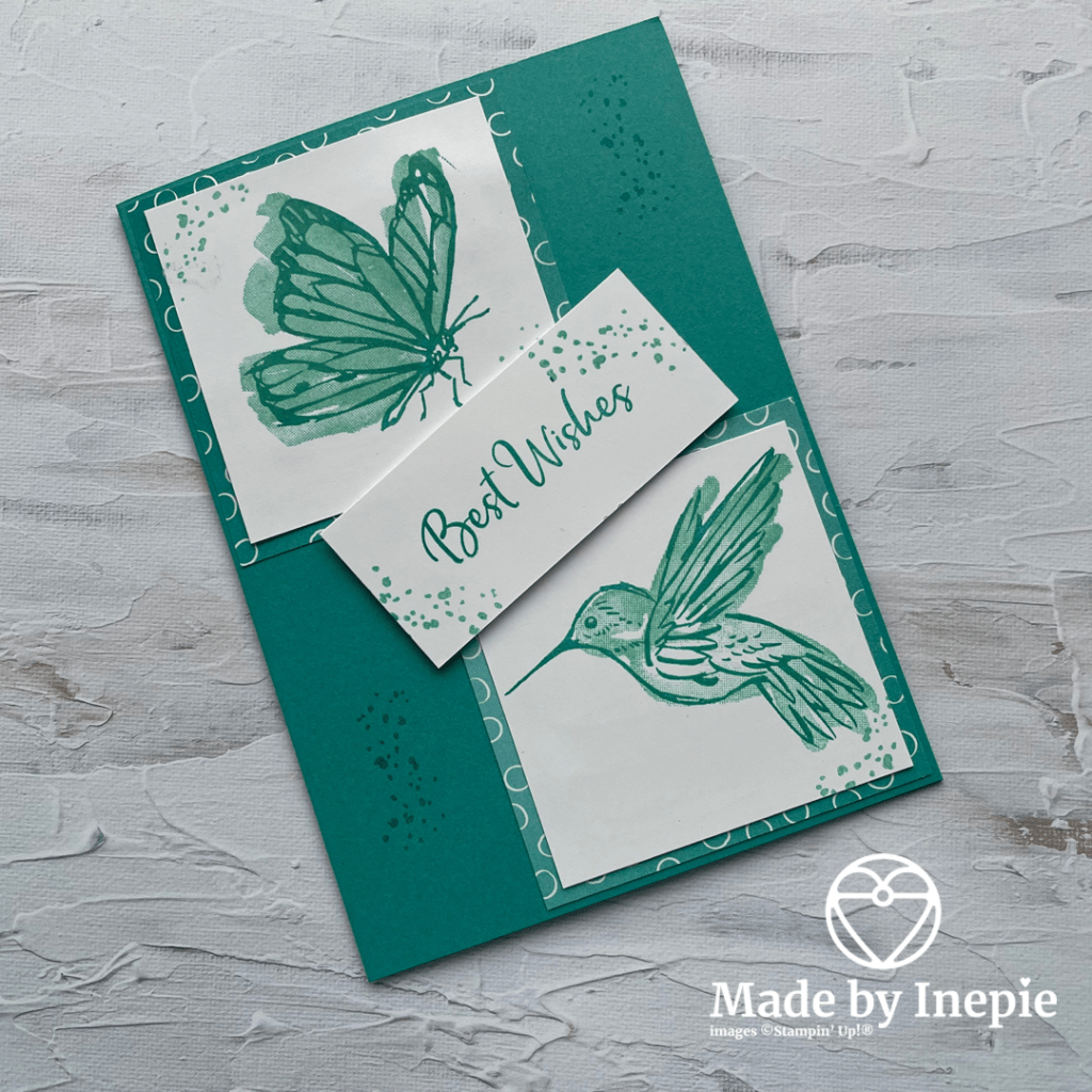 In dit schattige kaartje heb ik twee Sale-A-Bration items gebruikt. Het prachtige Oh So Ombre Dsp en de geweldige stempelset A Touch of Ink( bij een bestelling van €120,00).