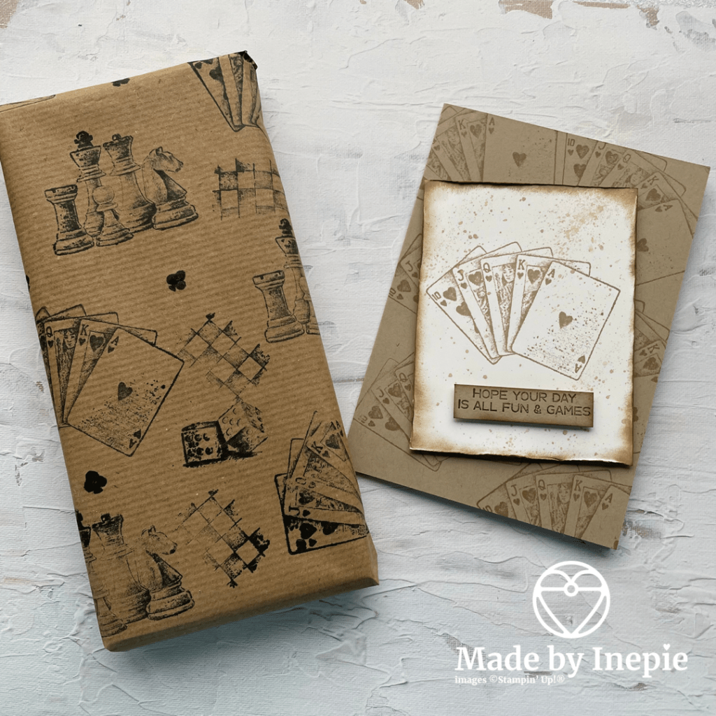 Ik vond het zo leuk dat ik een andere mannenset heb gepakt die nog in de catalogus staat: Game On. En ben weer lekker gaan stempelen.