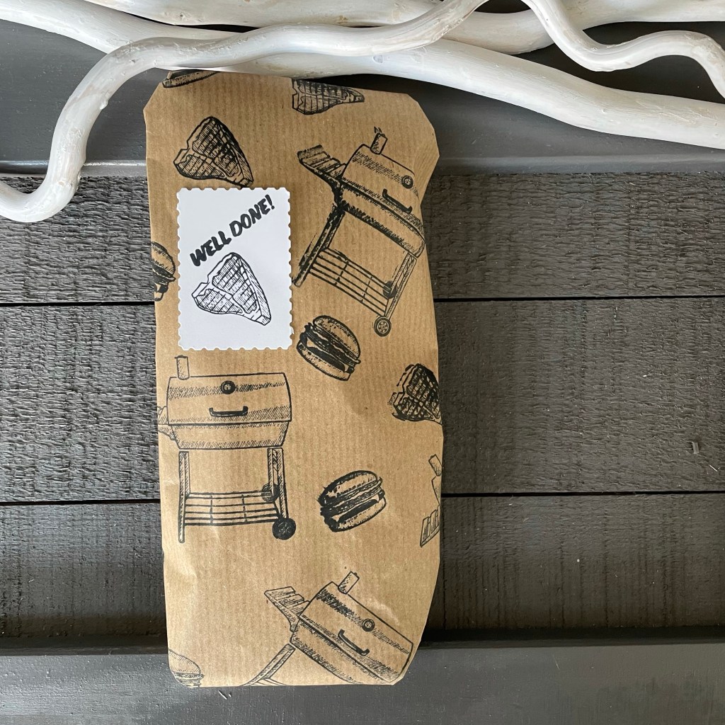 Op het inpakpapier heb ik gewoon lekker random gestempeld: ziet er zo stoer uit.En hieronder zie je het eindresultaat: leuk toch?