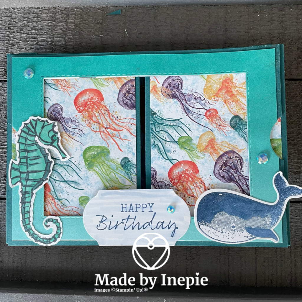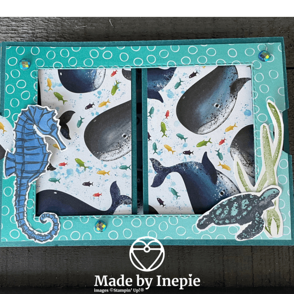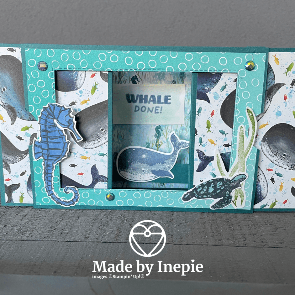 De Whale Done stempelset met bijbehorende pons blijft gelukkig in de jaarcatalogus dus zul je hem hier vast nog wel voorbij zien zwemmen. Wil jij deze bestellen dan heb je nu nog een 10% bundel voordeel op de stempelset en pons samen. Mail mij op Madebyinepie@gmail.com.
