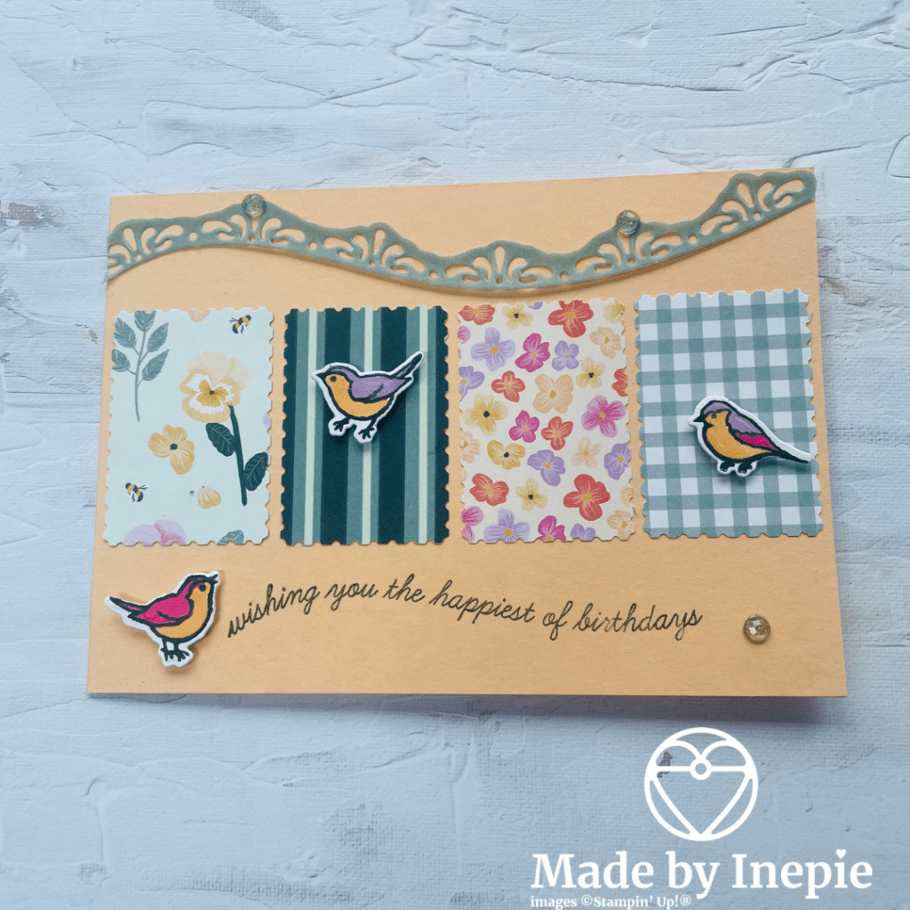Ik vind het een schattig kaartje geworden. En zo leuk om oud en nieuw te combineren. Alle gebruikte producten kun je bij mij bestellen op madebyinepie@gmail.com of in mijn webshop : madebyinepie.stampin.net