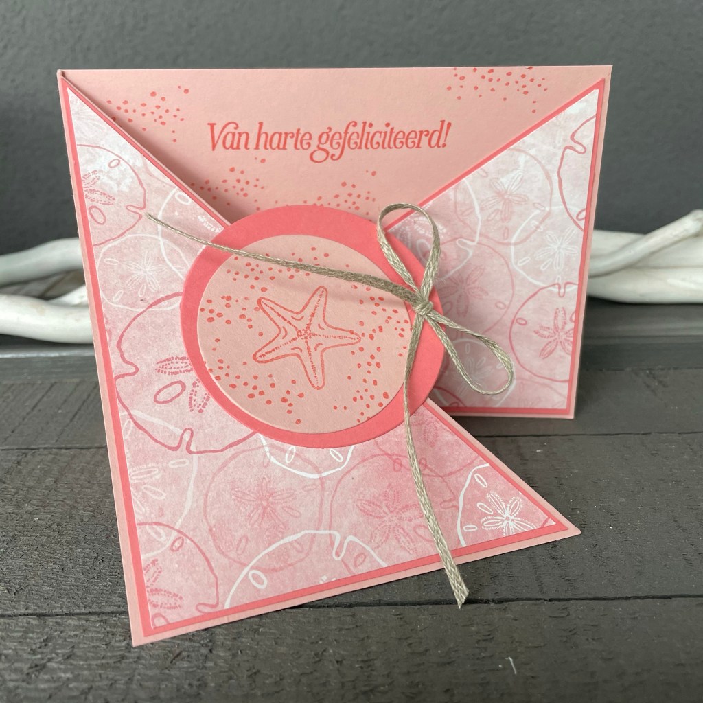 We hebben met de Friends are like Seashells stempelset gewerkt en het Sands & Sea Dsp. Ik verkoop alle producten van Stampin’Up! Je kan jouw bestelling doorgeven op madebyinepie@gmail.com
