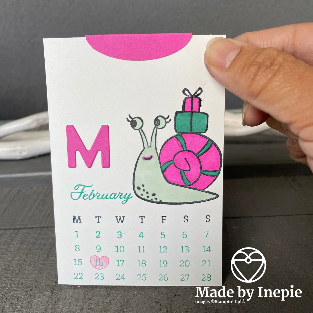 Dus heb ik dit leuke kleine kaartje gemaakt. Op 16 februari is mijn nicht Muriel jarig ( zij noemt mij haar tweede moeder) en is dol op slakjes en daarom heb ik het kaartje versierd met het leuke slakje uit de Snailed It stempelset. Deze is nog maar even te bestellen. Tot 30 juni want dan eindigt de mini catalogus.